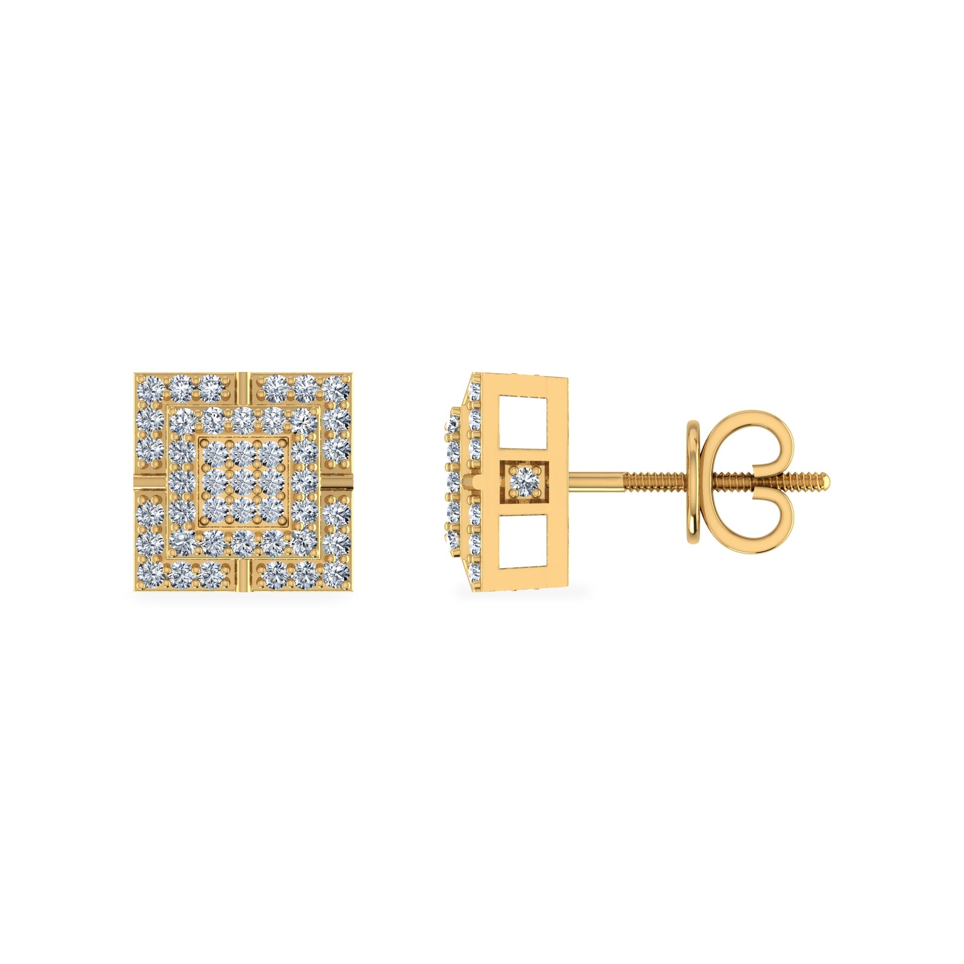 10K Yellow Gold Round Diamond Square Shape Stud Earrings 1/3 Cttw