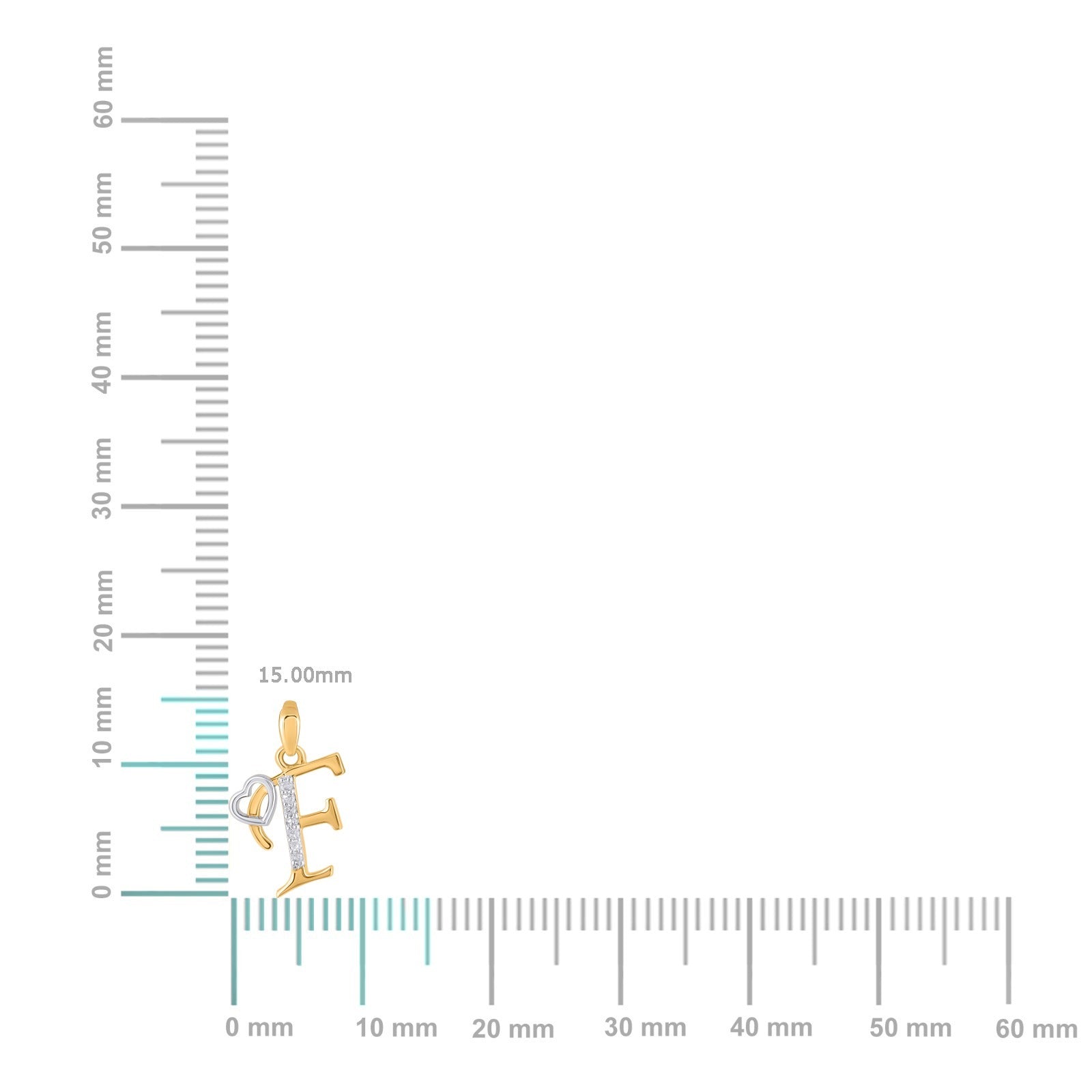 10K Yellow Gold Round Diamond F Letter Initial With Heart Pendant 1/10 Cttw