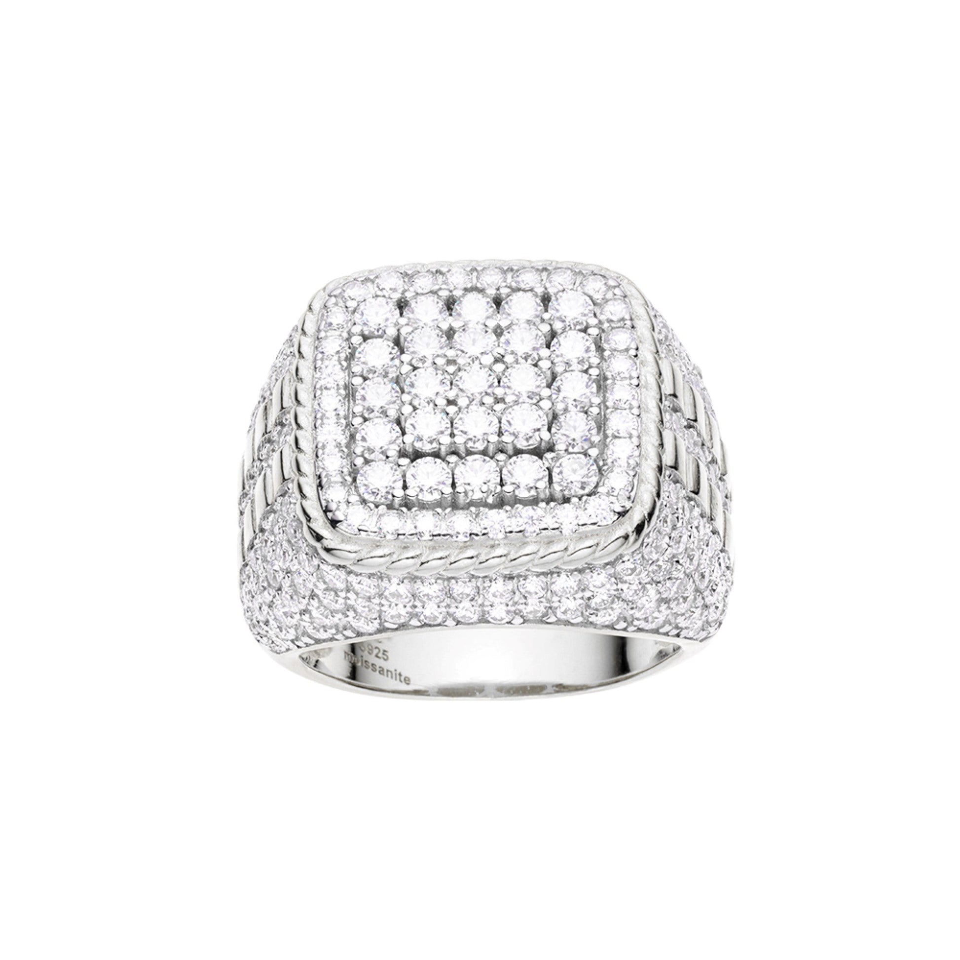 Sterling Silver Round Moissanite Designer Mens Ring RP 3-7/8 Cttw