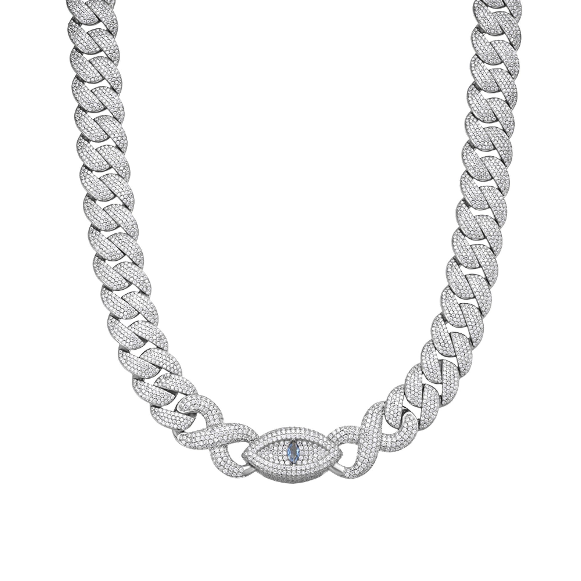 Sterling Silver Round Moissanite 18mm Inifinity Cuban With Evil Eye Designer 22 Inch Mens Necklace RP 35-3/4 Cttw