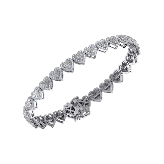 10K White Gold Round Baguette Diamond Heart Designer 7 Inch Bracelet  2-1/6 Cttw