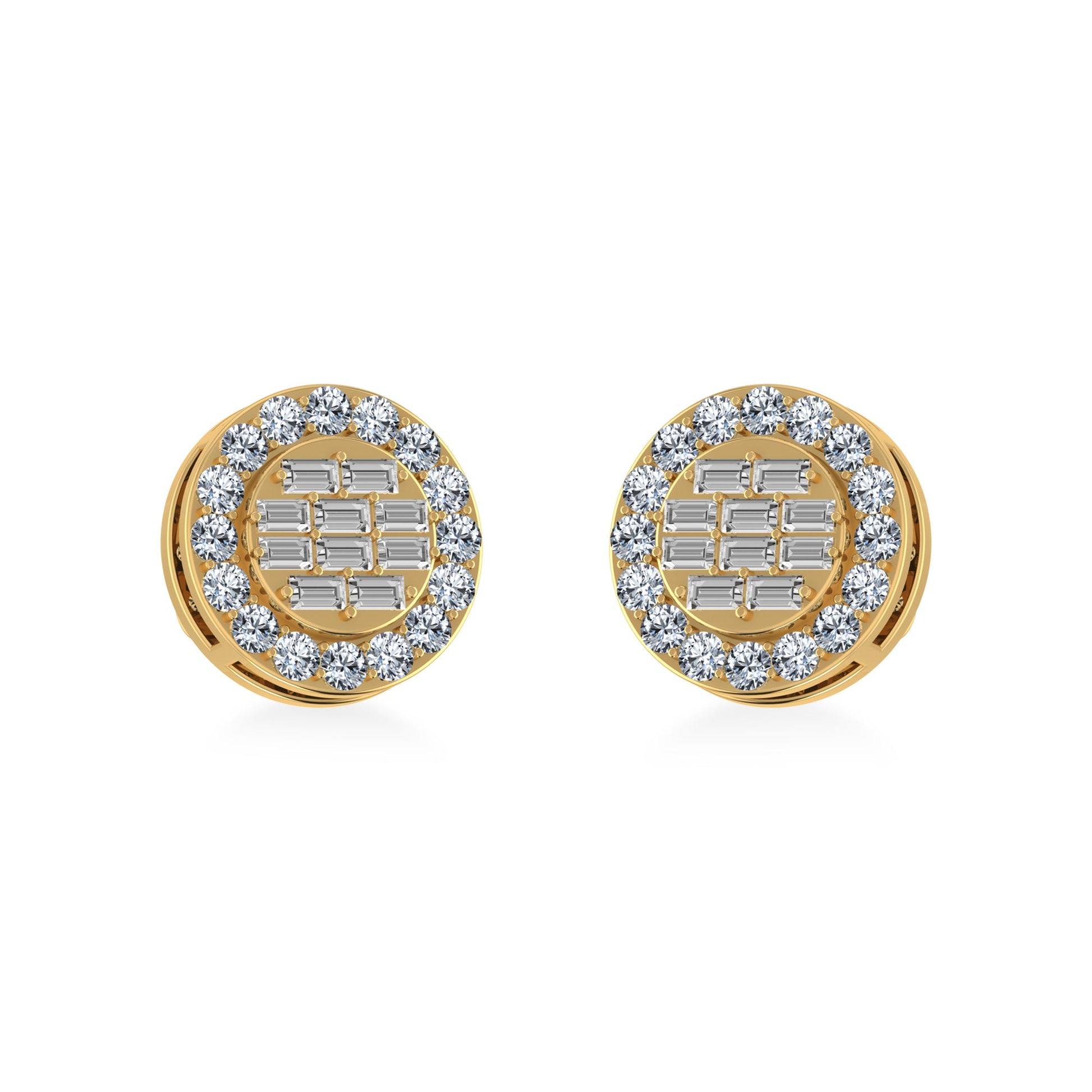 14K Yellow Gold Round Baguette Diamond Halo Stud Earrings 1/2 Cttw