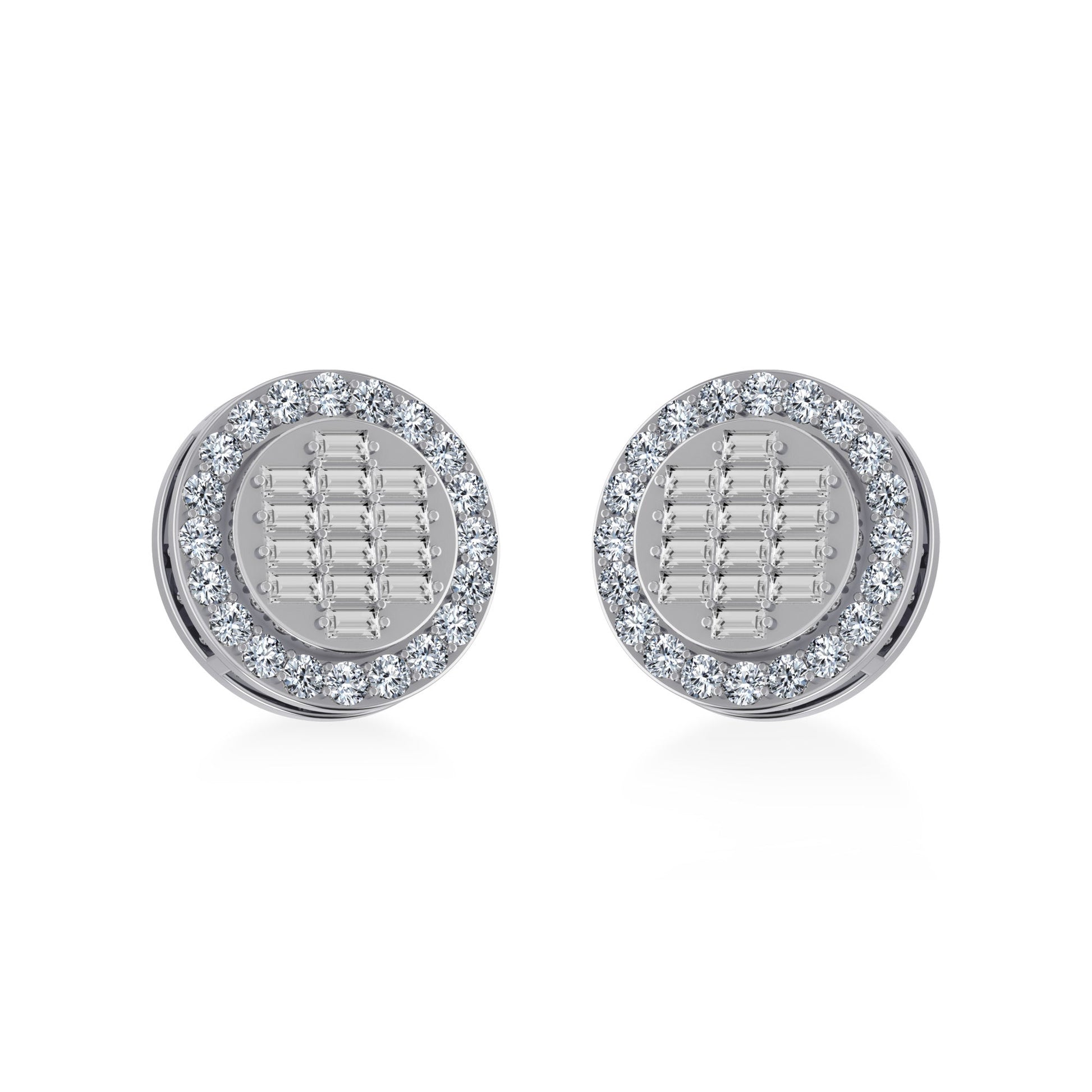 14K White Gold Round Baguette Diamond Halo Stud Earrings 5/8 Cttw