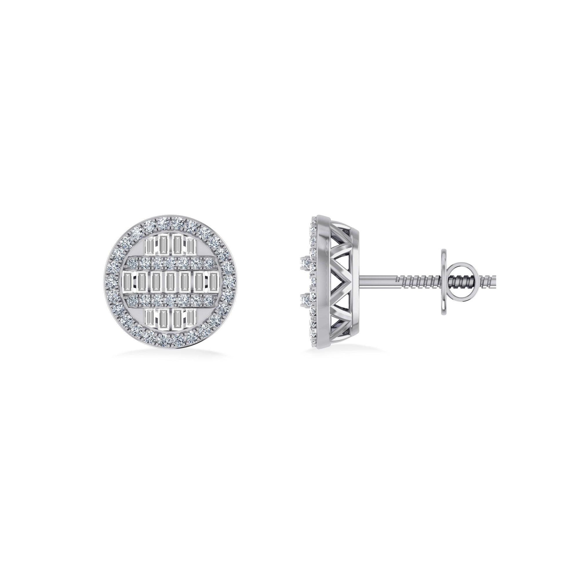 10K White Gold Round Baguette Diamond Designer Mens Stud Earring 3/8 Cttw