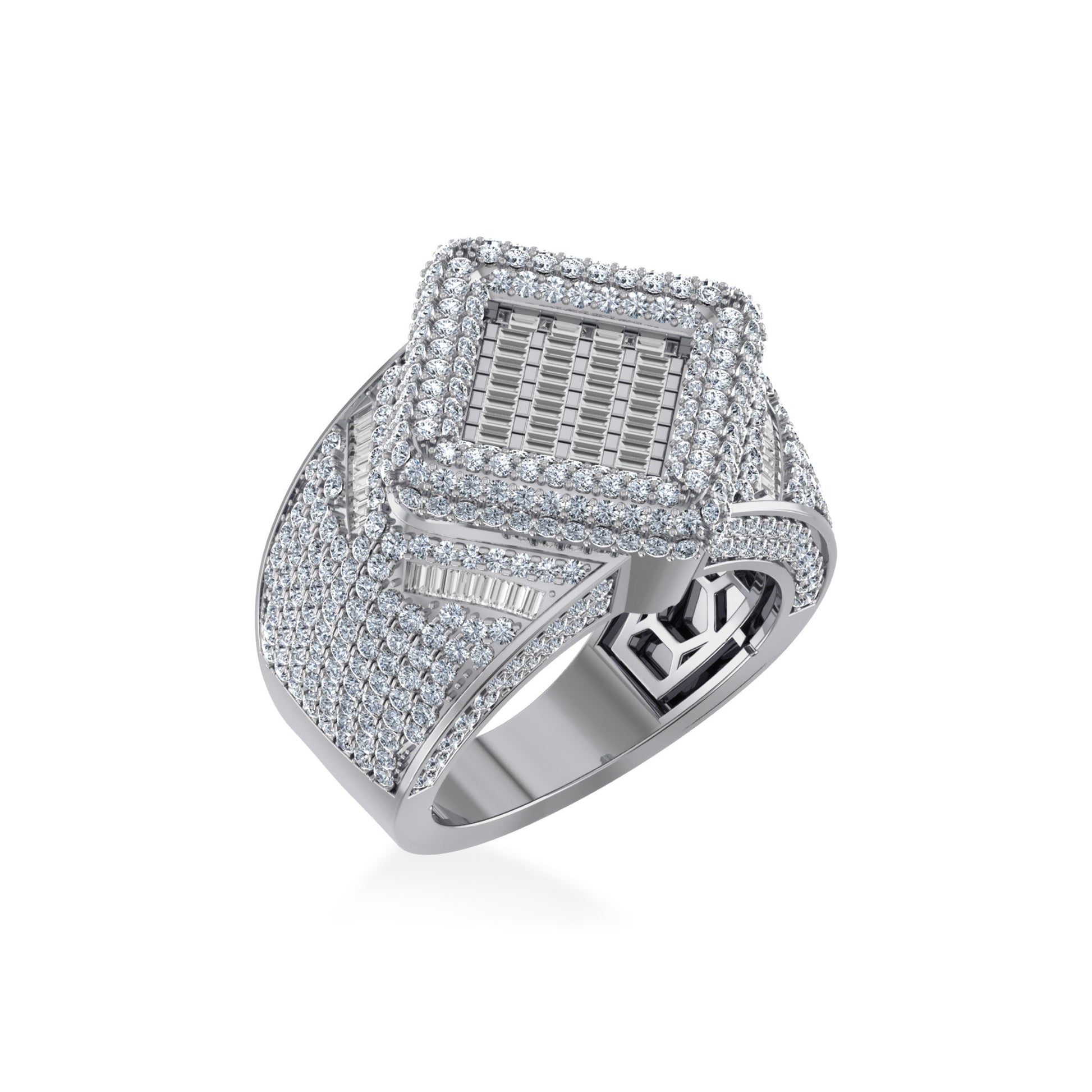 10K White Gold Round Baguette Diamond Designer SZ 10 Mens Ring 4 Cttw