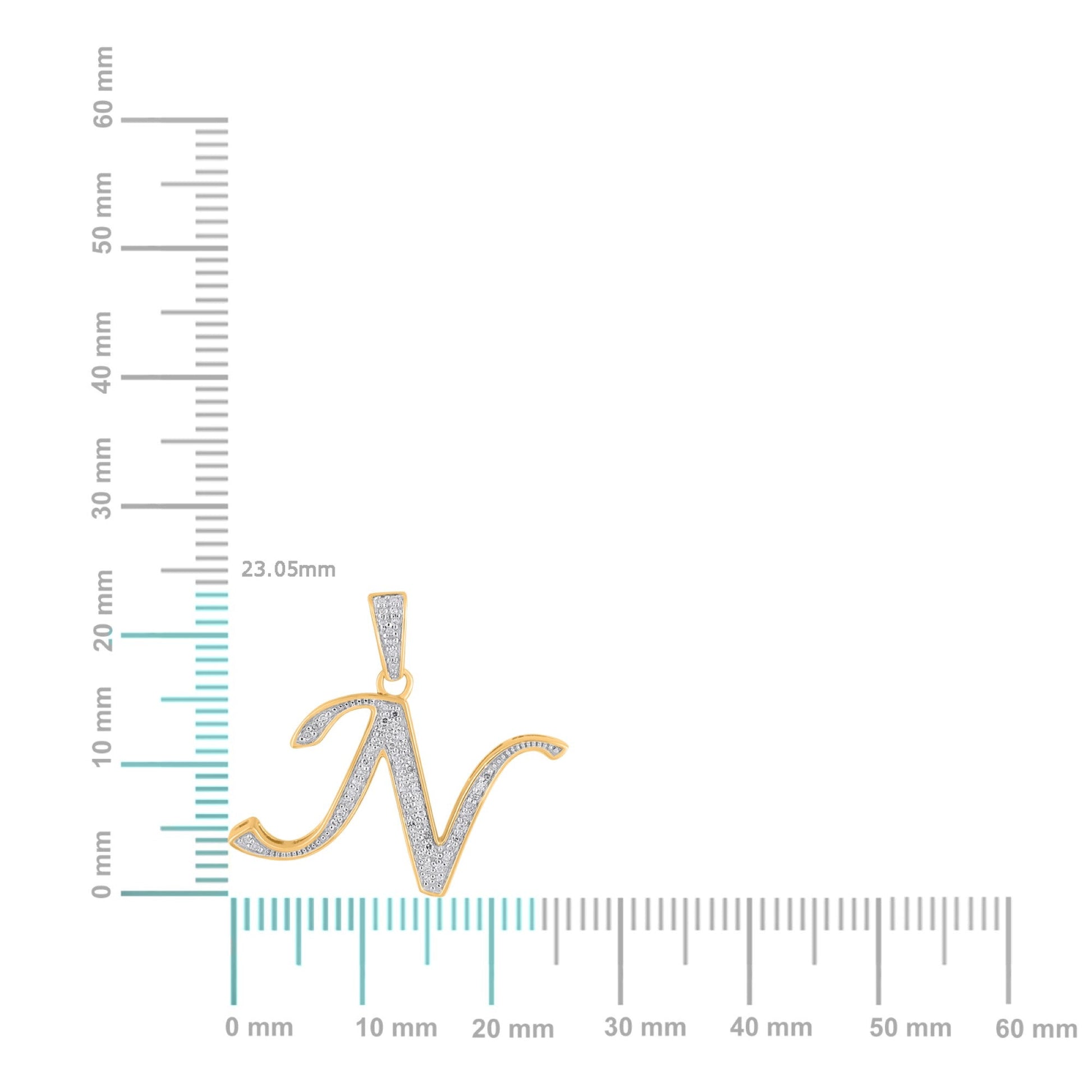 10K Yellow Gold Round Diamond N Letter Initial Pendant 1/10 Cttw