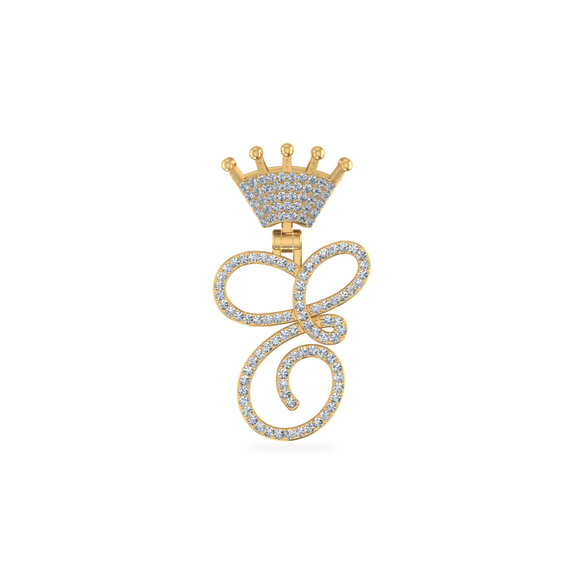 10K Yellow Gold Round Diamond Crown E Letter Initial Pendant 1/5 Cttw
