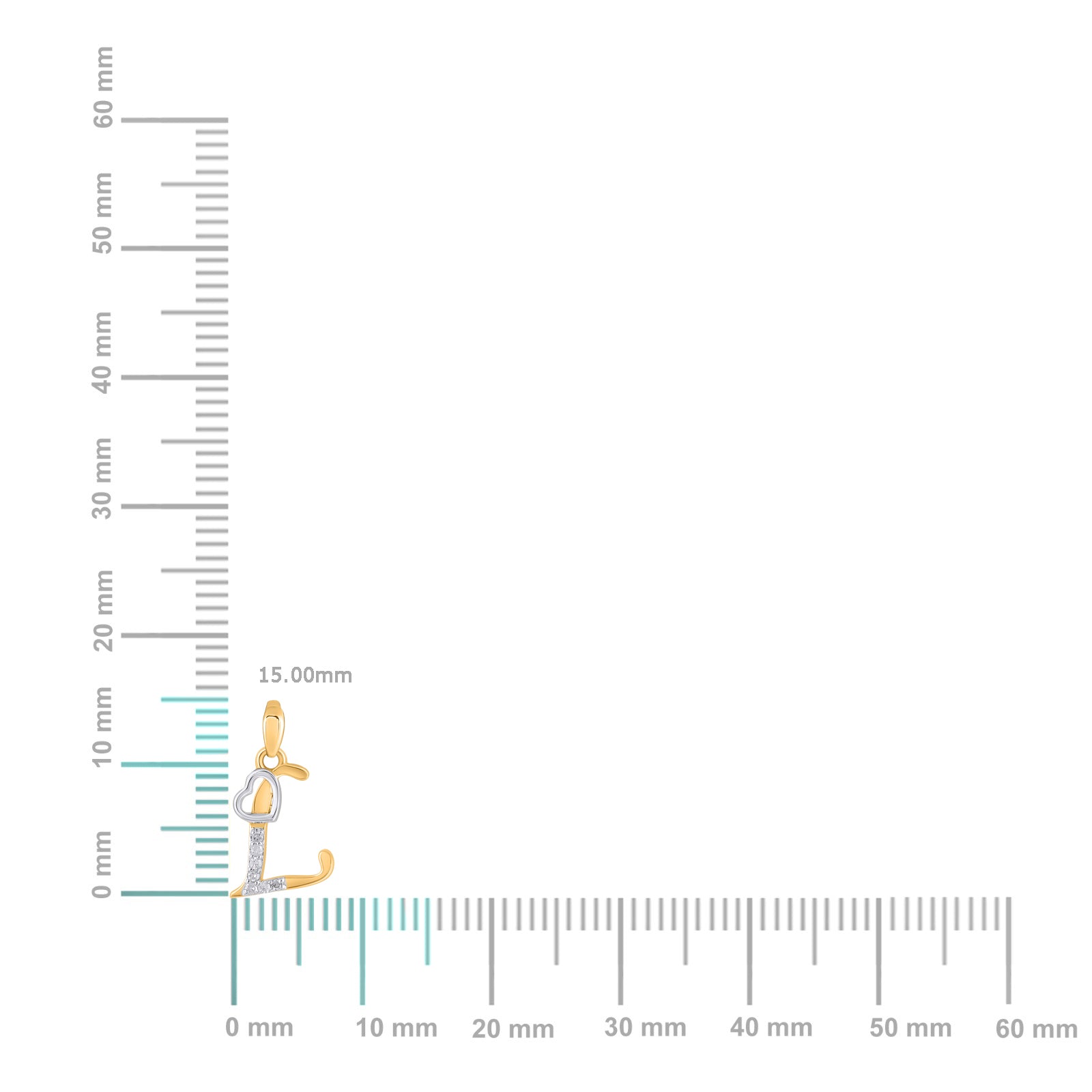 10K Yellow Gold Round Diamond L Letter Initial With Heart Pendant 1/10 Cttw