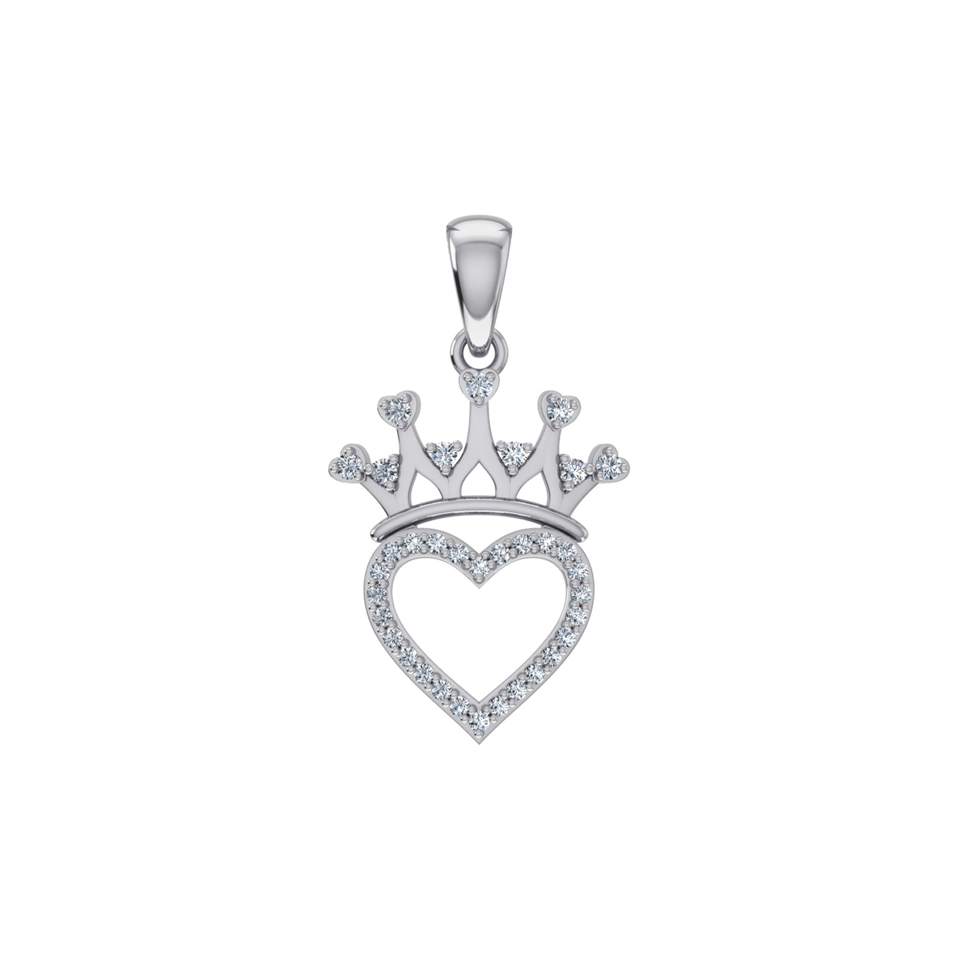 10K White Gold Round Diamond Heart Crown Pendant 1/10 Cttw