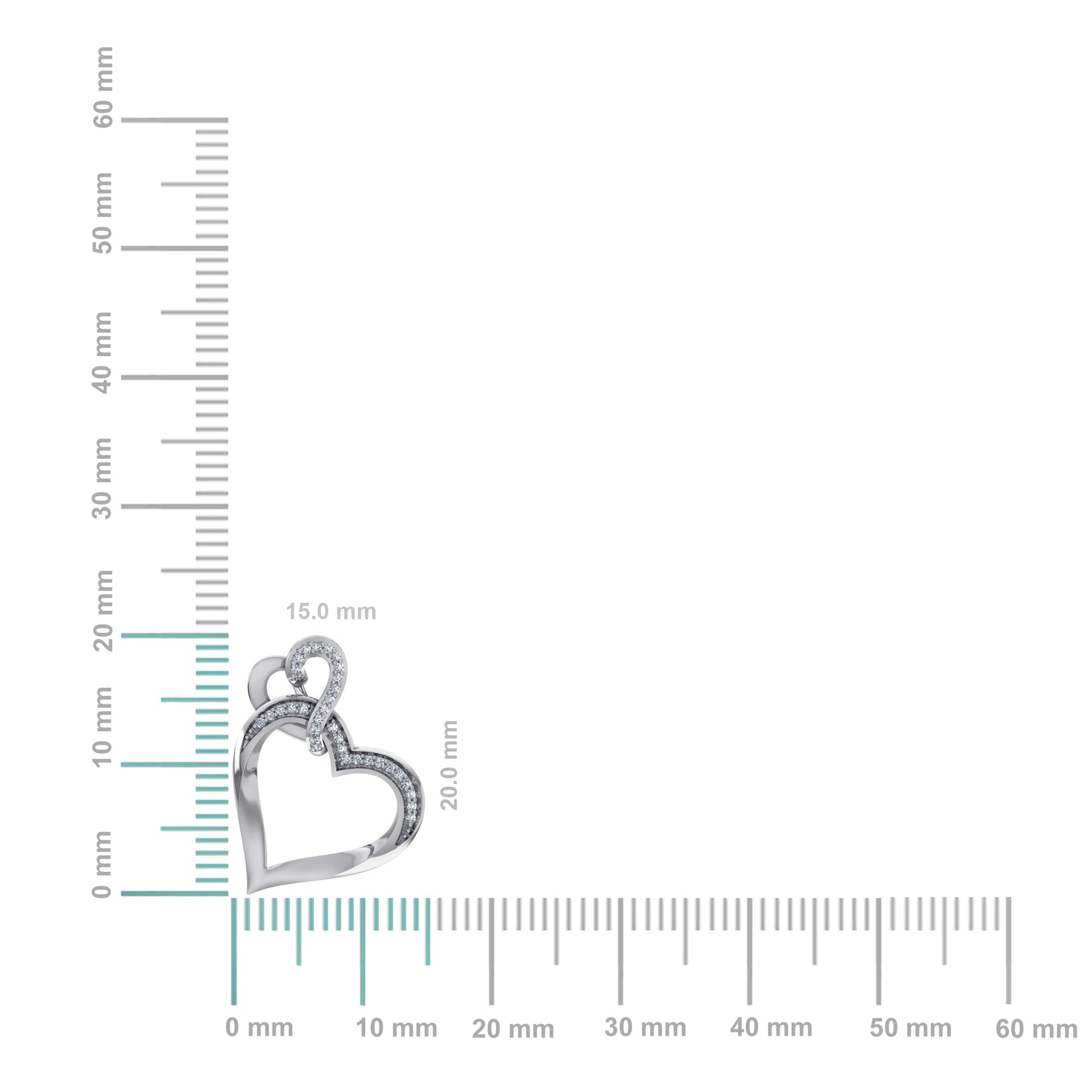 10K White Gold Round Diamond Womens Double Heart Pendant 1/20 Cttw