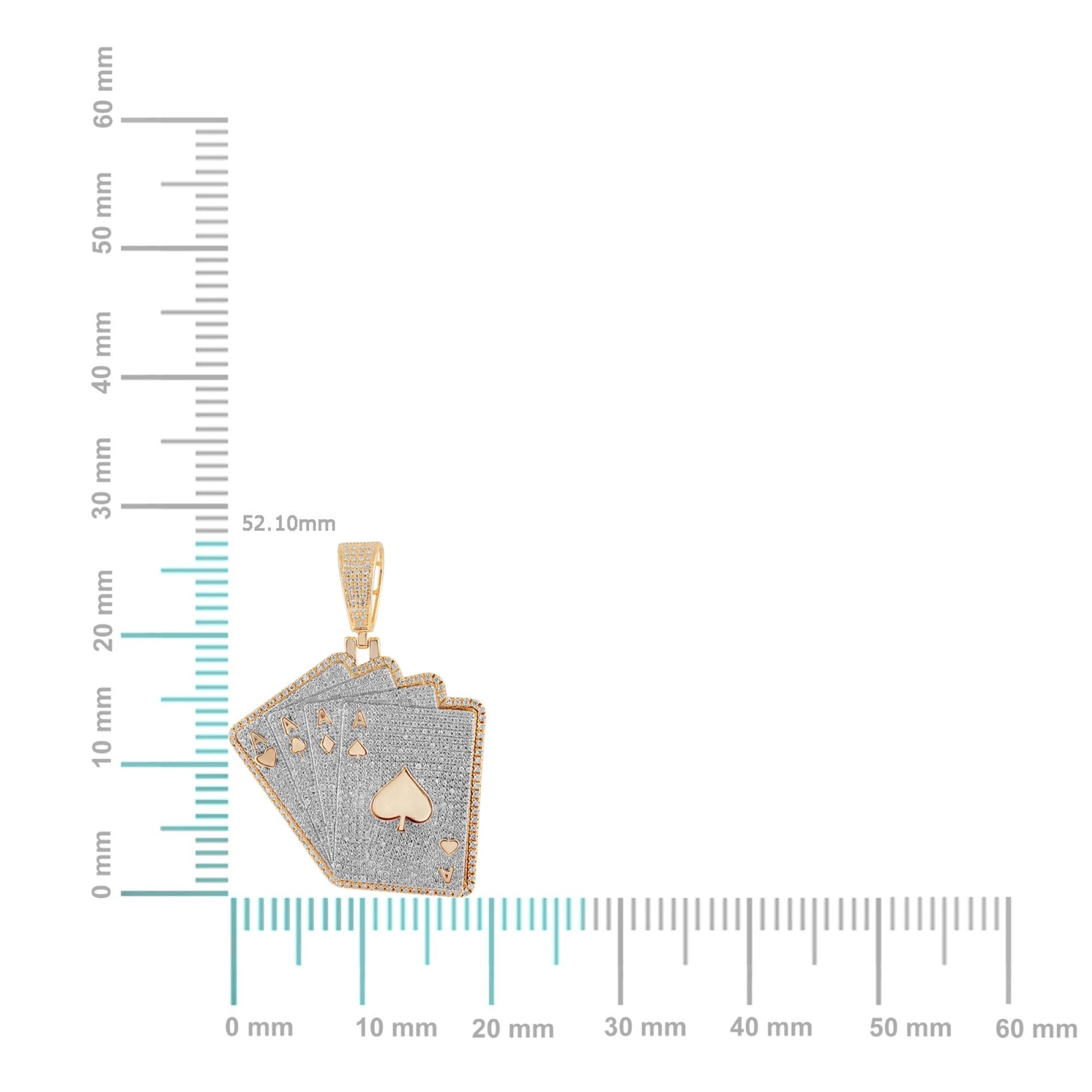 10K Yellow Gold Round Diamond Flush Cards Pendant 1-5/8 Cttw