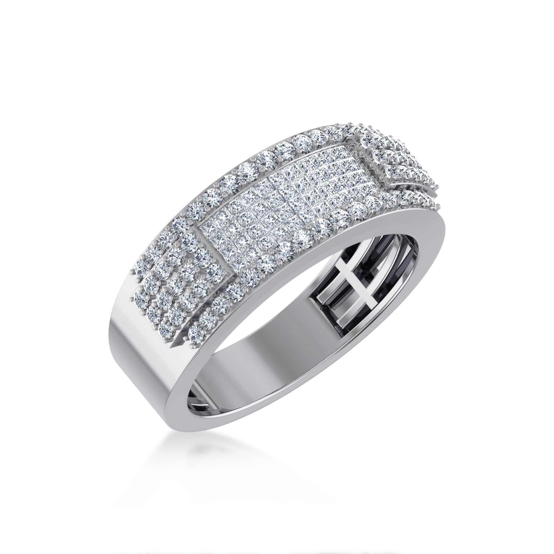 10K White Gold Princess Diamond Mens Invisible Band 1-1/3 Cttw