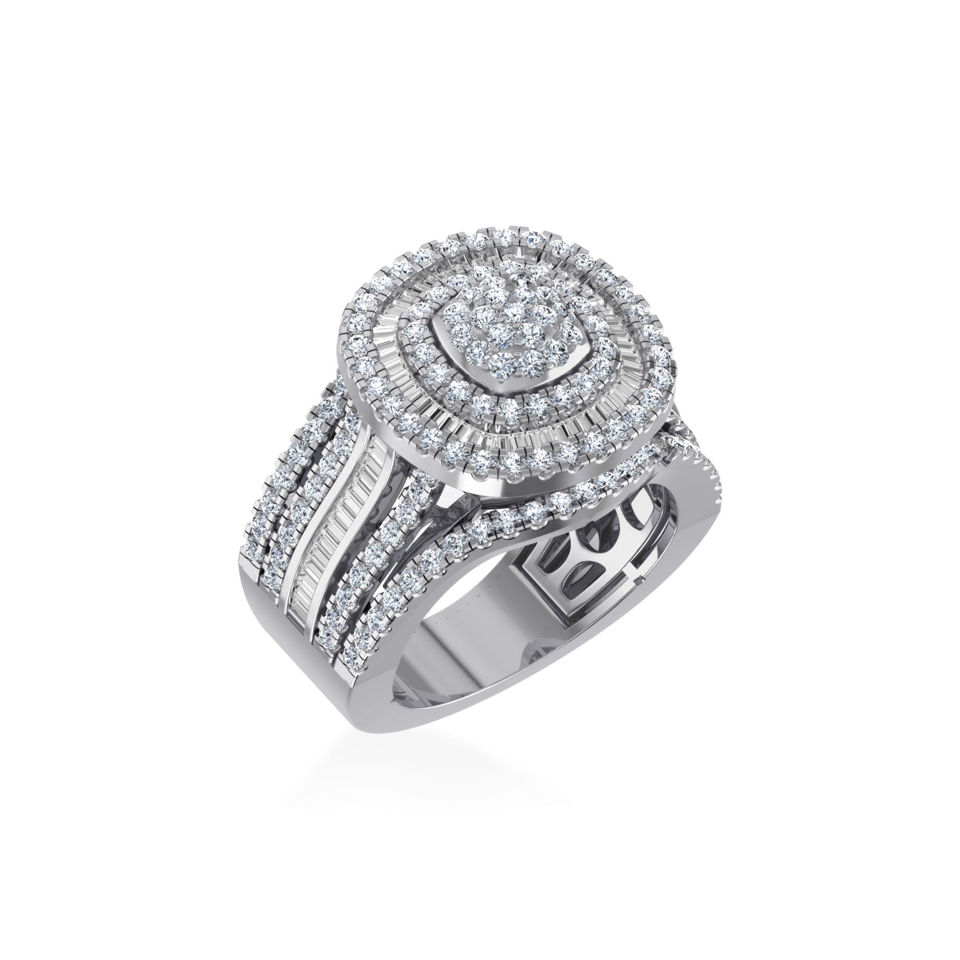 10K White Gold Round Baguette Diamond Square Shape Designer Womens Ring SZ 7 2 Cttw