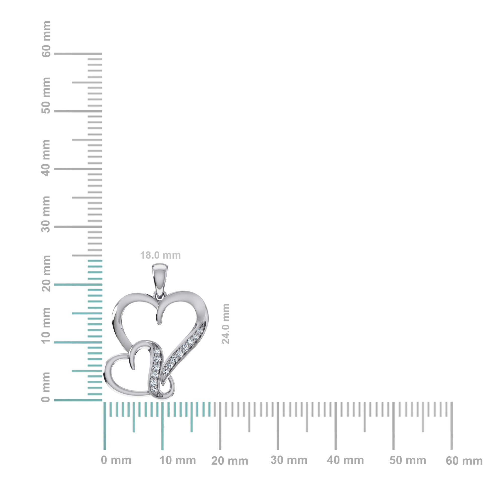 10K White Gold Round Diamond Womens Double Heart Pendant 1/10 Cttw
