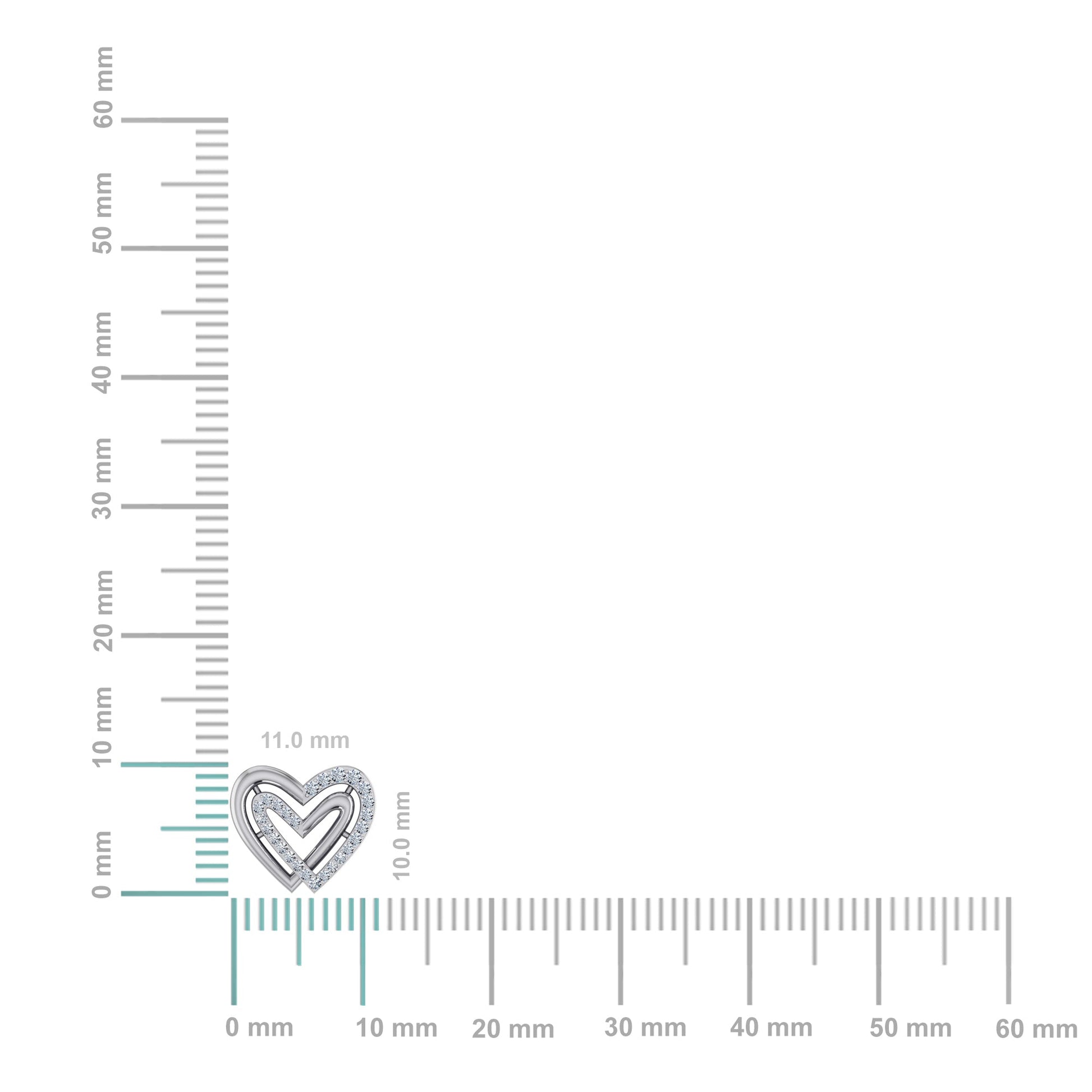 10K White Gold Round Diamond Double Heart Stud Earrings 1/6 Cttw