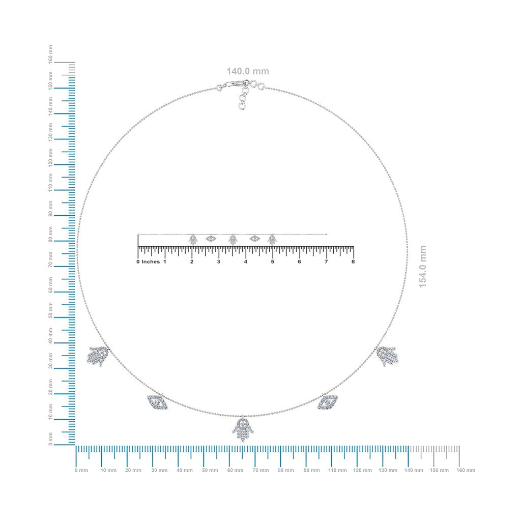 14K White Gold Hamsa Hand Evil Eye Necklace Bracelet Set 1-1/4 Cttw