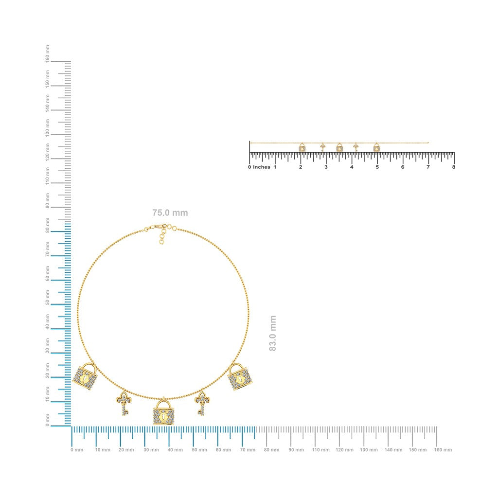 14K Yellow Gold Lock & Key Necklace Bracelet Set 5/8 Cttw