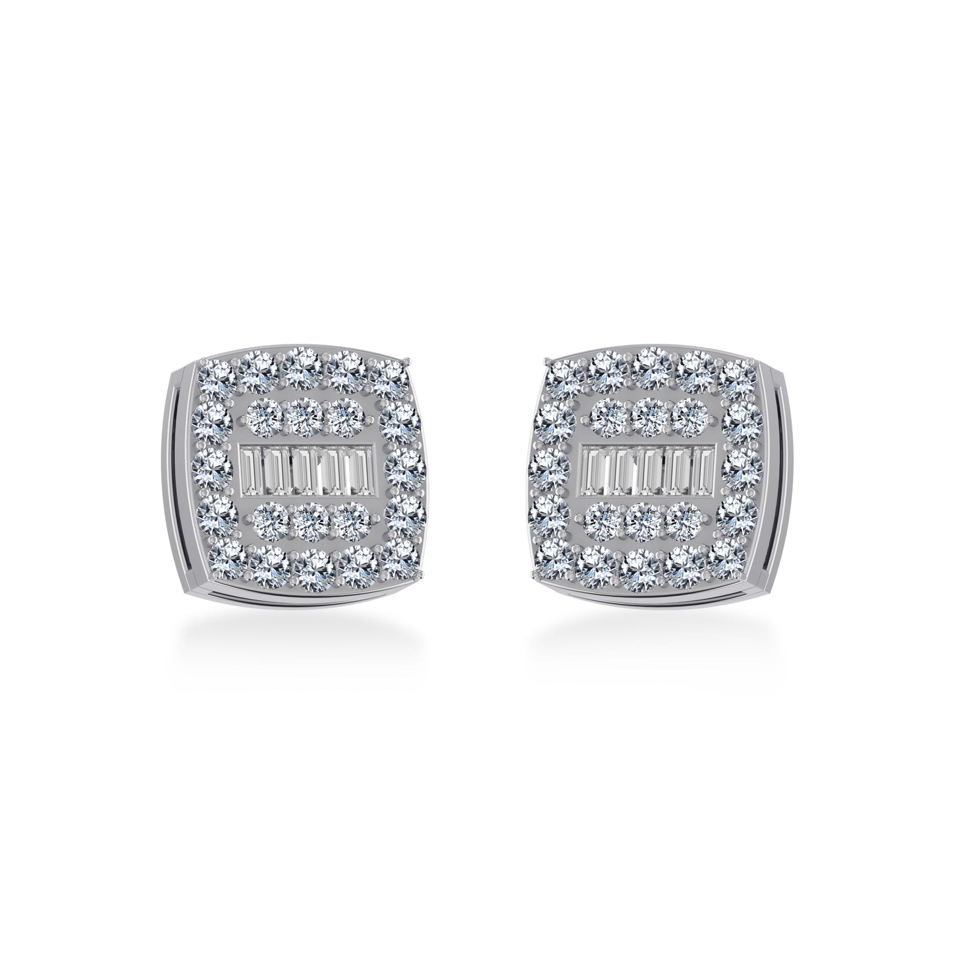 10K White Gold Round Baguette Diamond Square Shape Cluster Stud Earring 1/2 Cttw