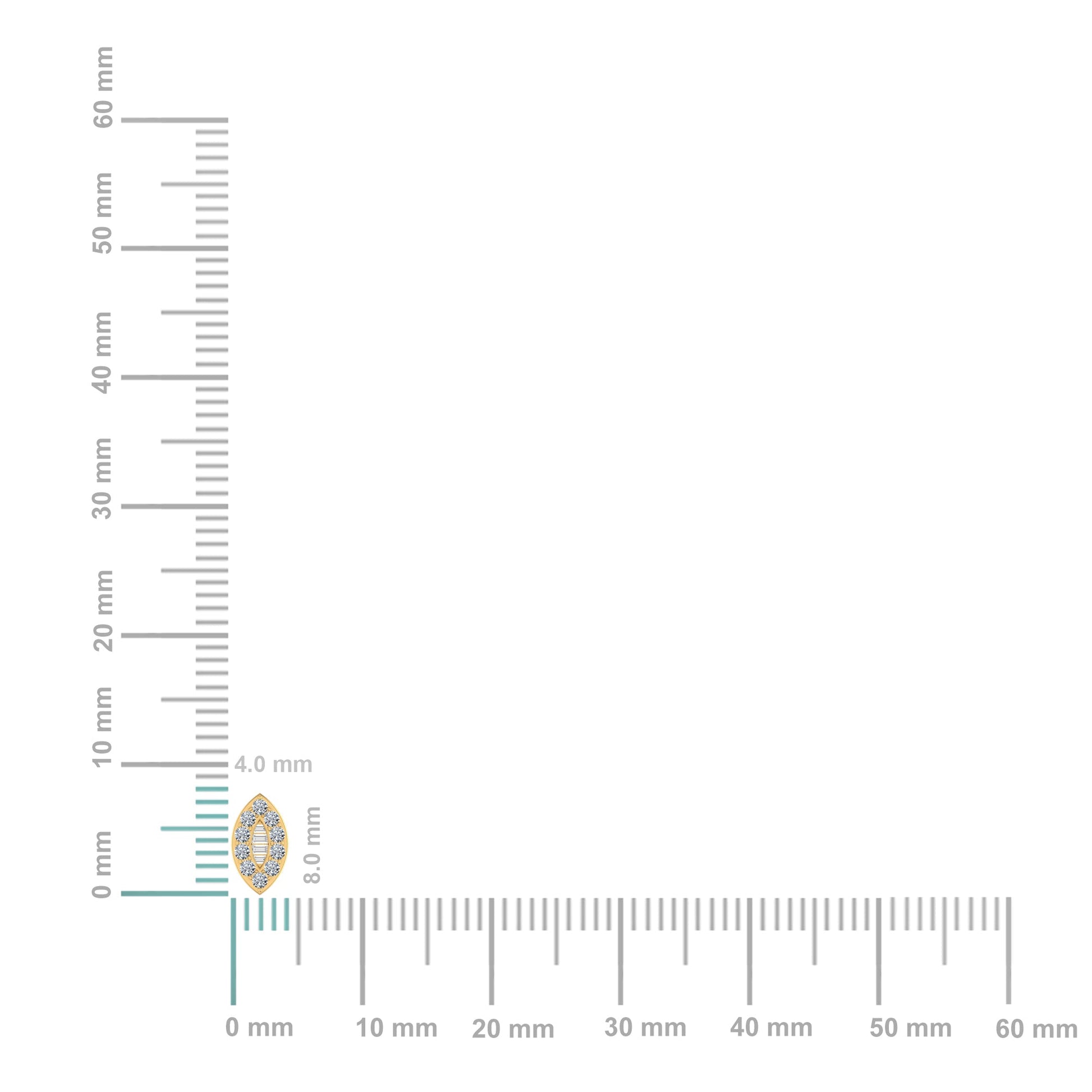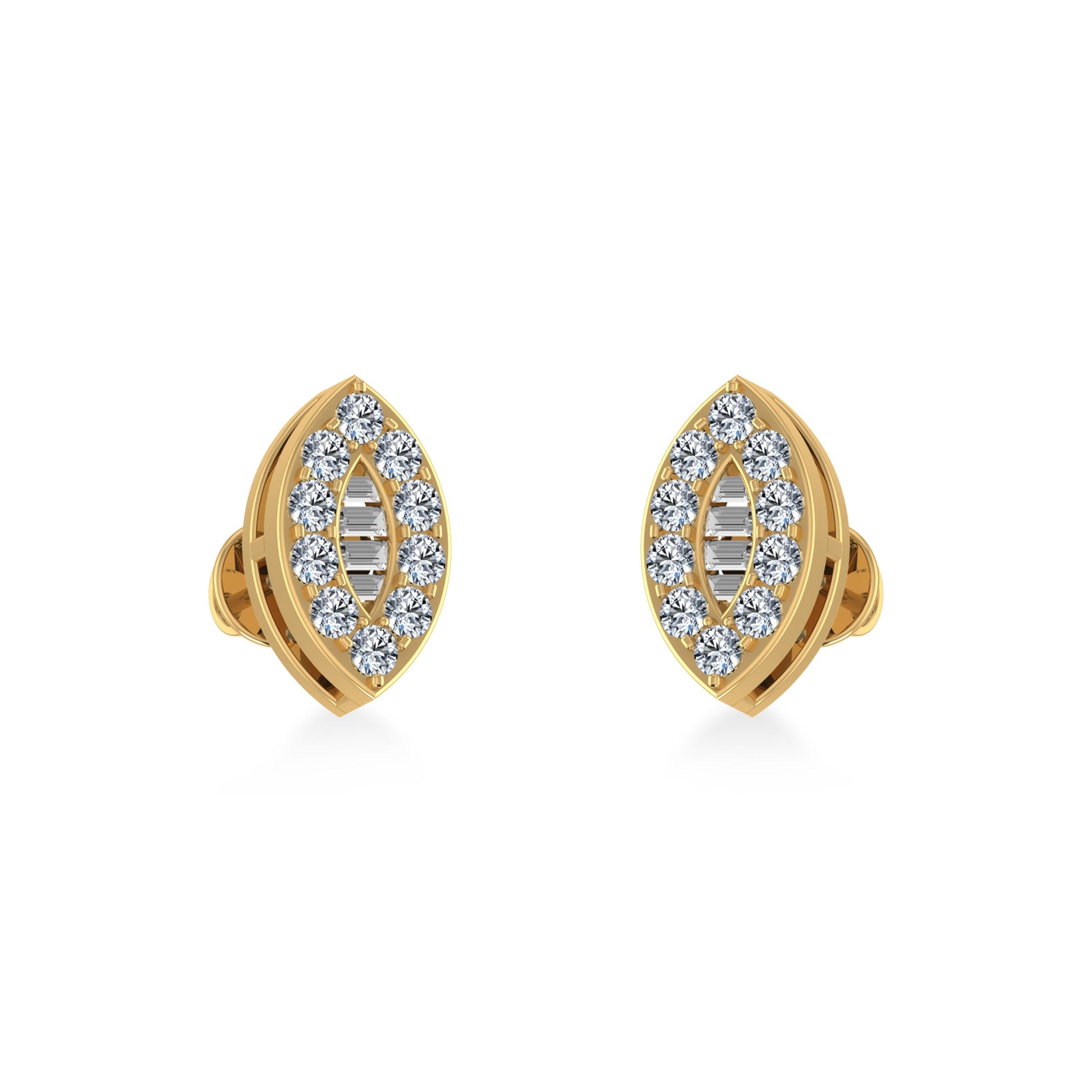 10K Yellow Gold Baguette Diamond Marquise Shape Stud Earrings 1/4 Cttw
