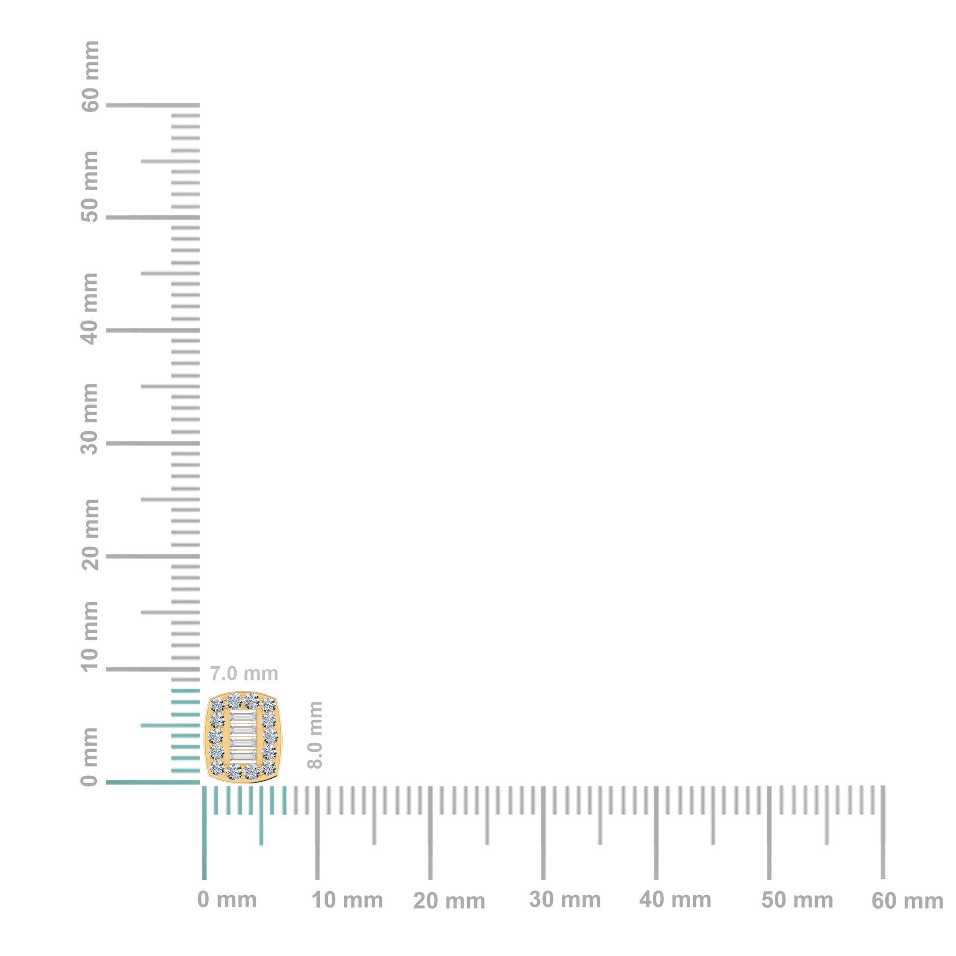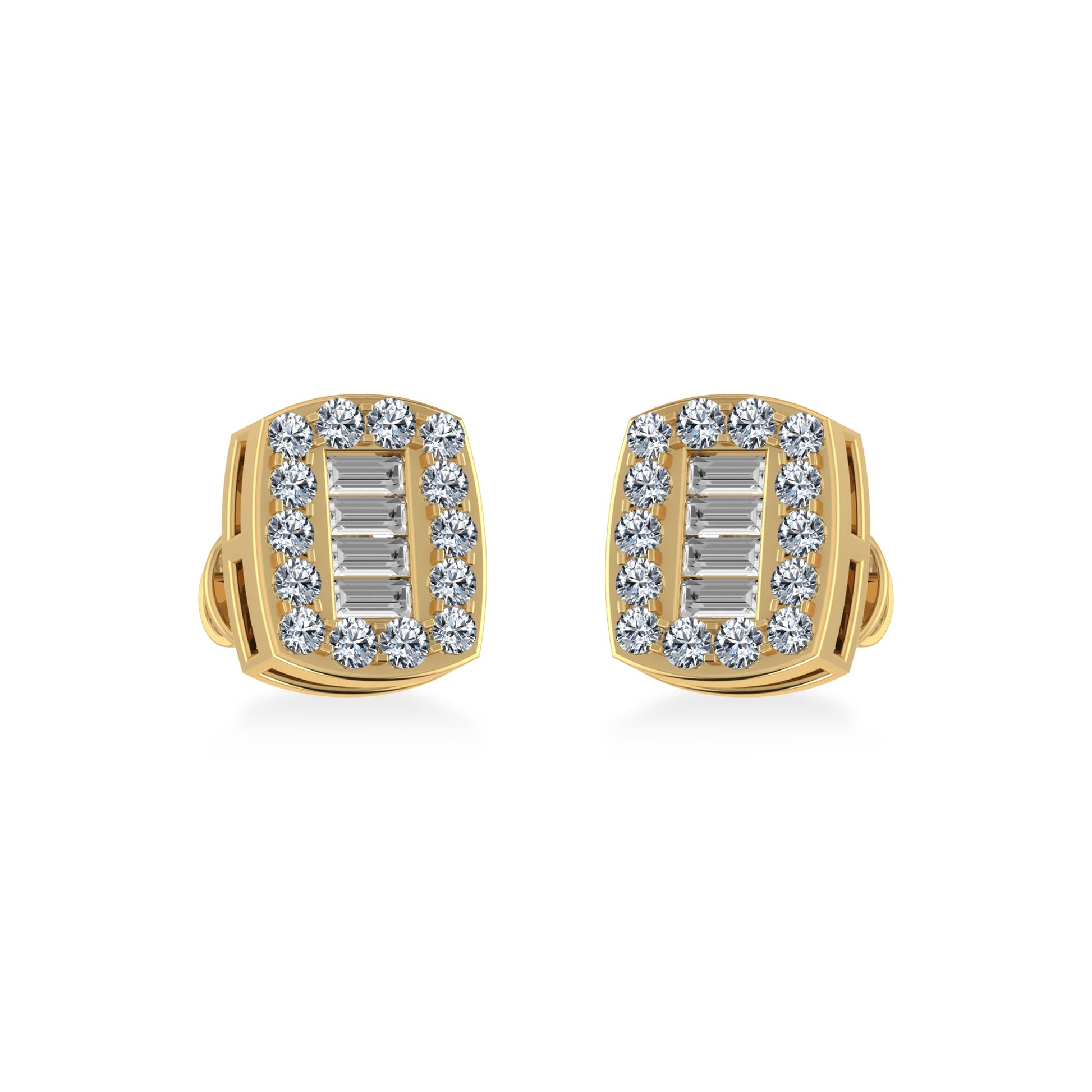 10K Yellow Gold Round Baguette Diamond Stud Earring 3/8 Cttw