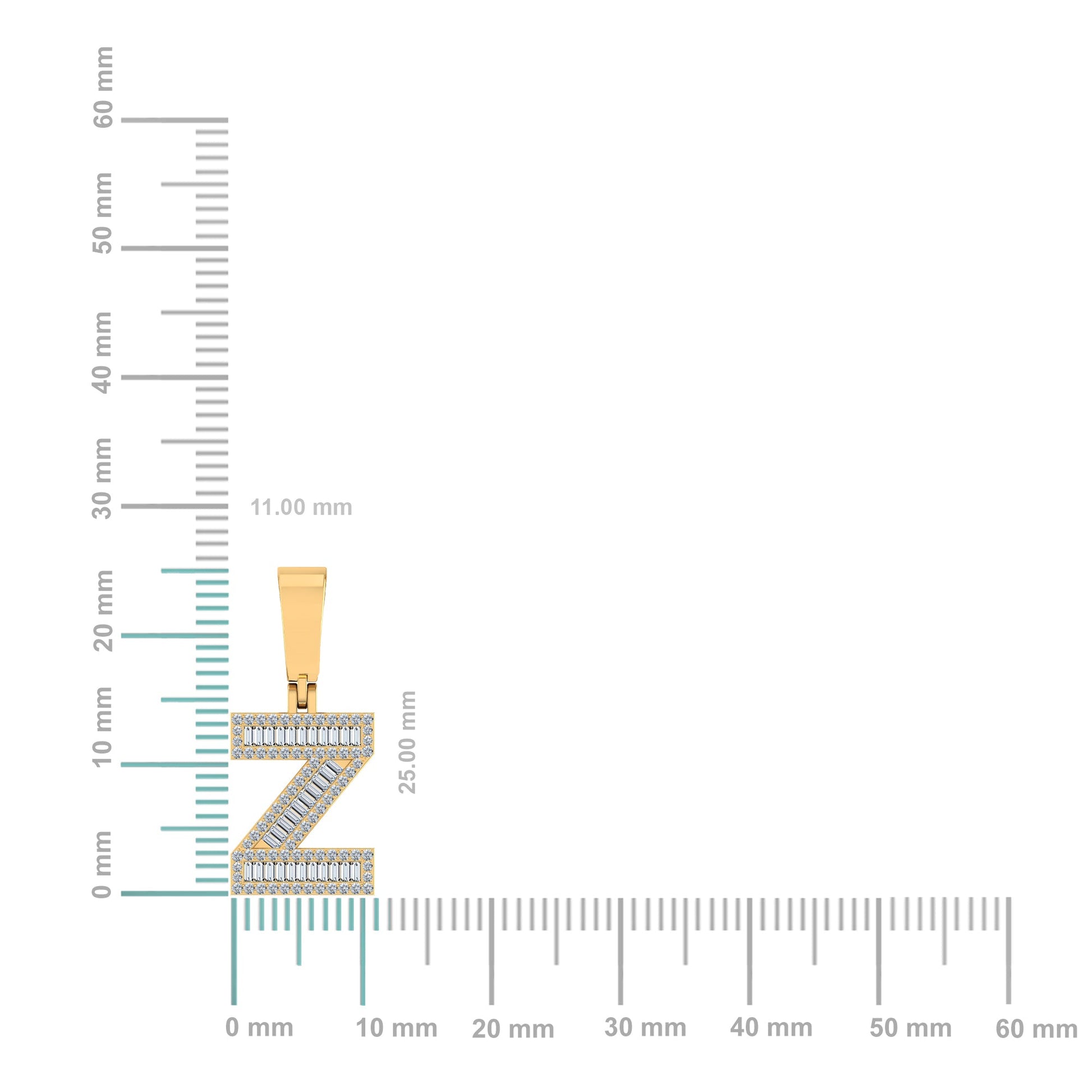 10K Yellow Gold Baguette Diamond Initial Z Letter Pendant 1/2 Cttw