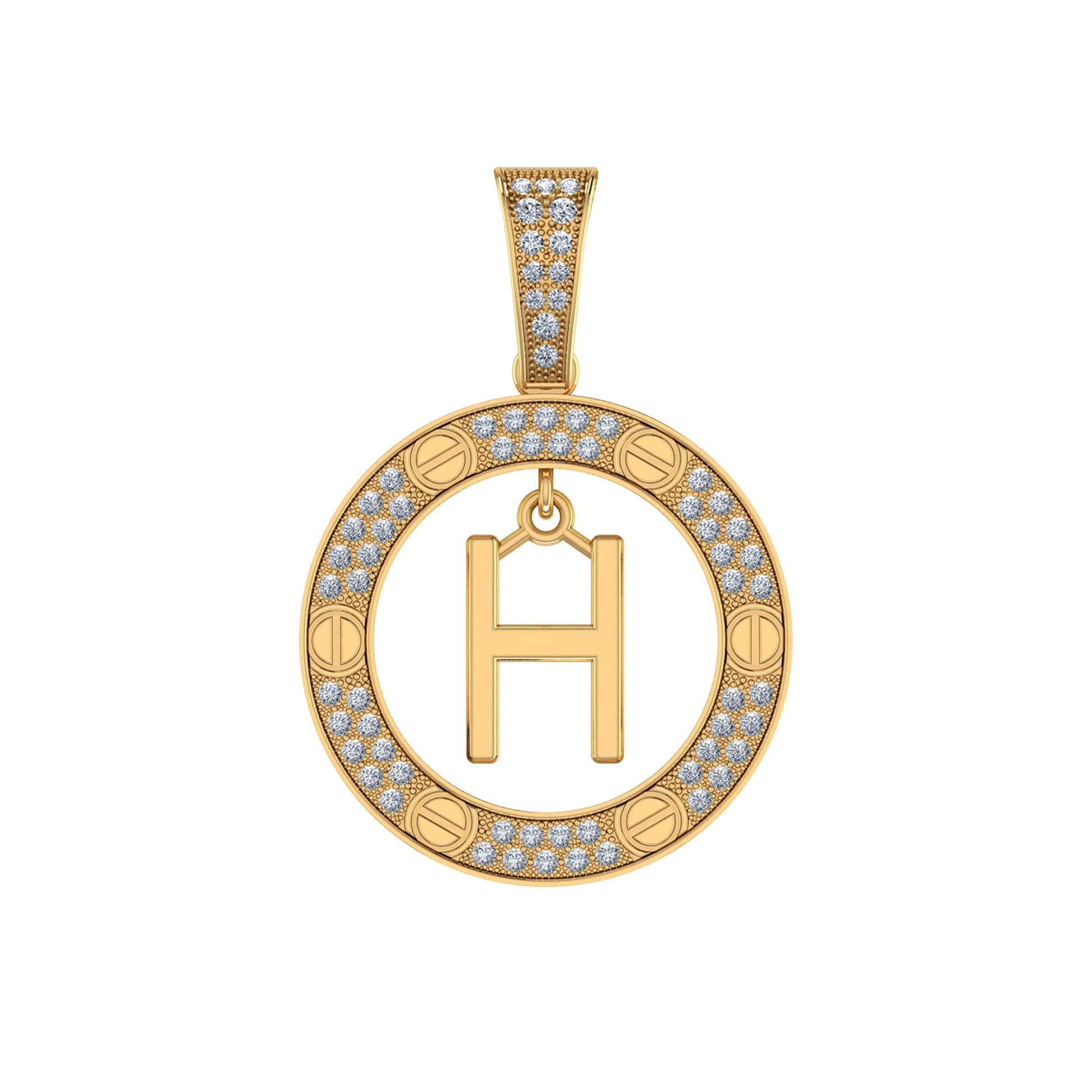 10K Yellow Gold Round Diamond H Letter Initial Pendant 1/5 Cttw