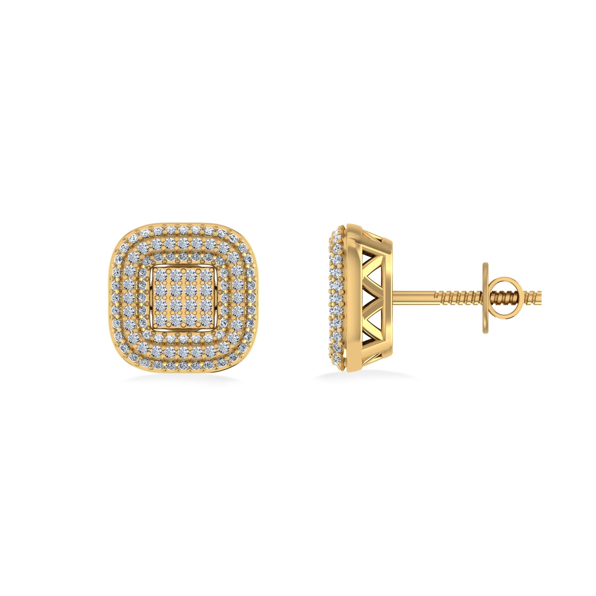 10K Yellow Gold Round Diamond Square Shape Designer Mens Stud Earring 1/4 Cttw