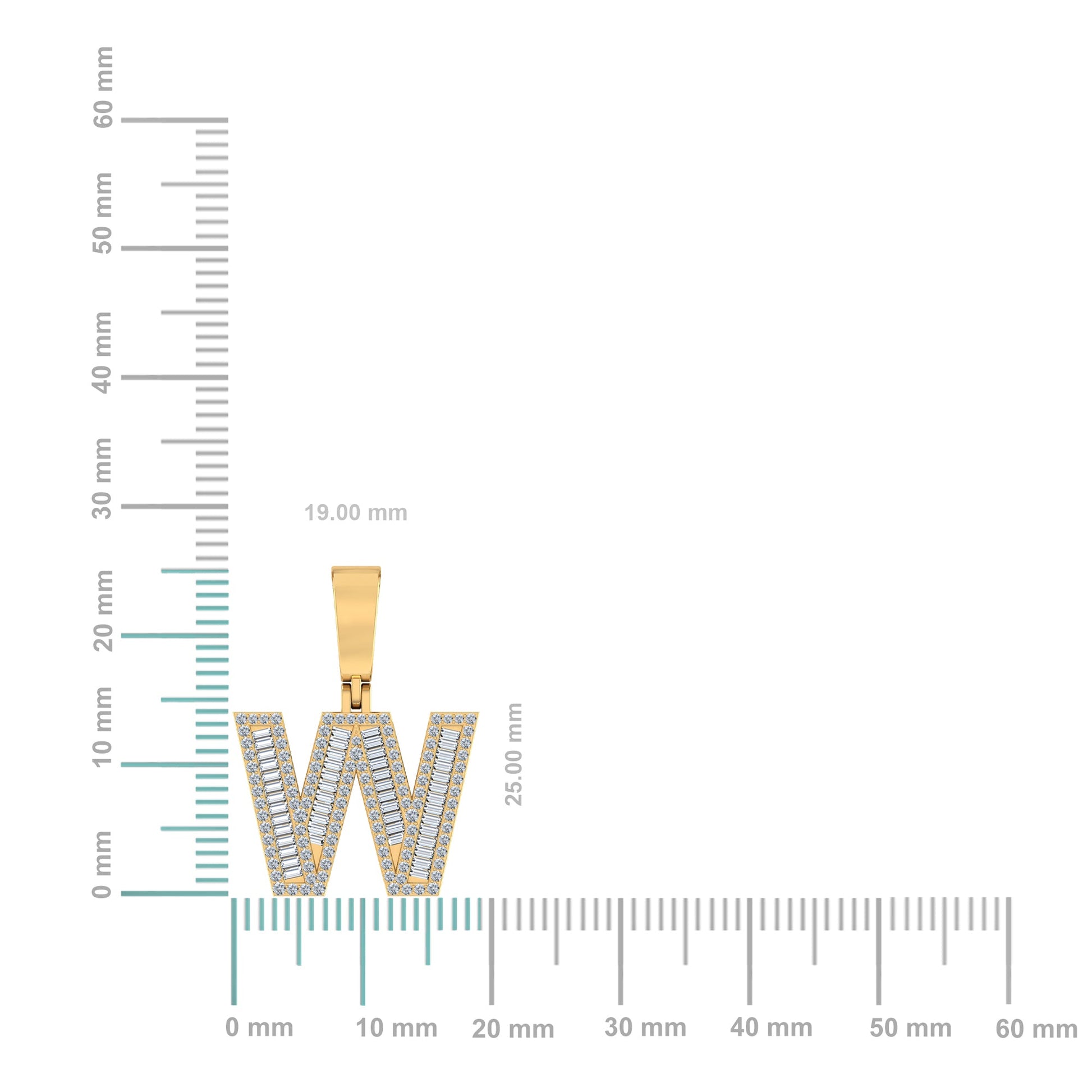 10K Yellow Gold Baguette Diamond Initial W Letter Pendant 5/8 Cttw