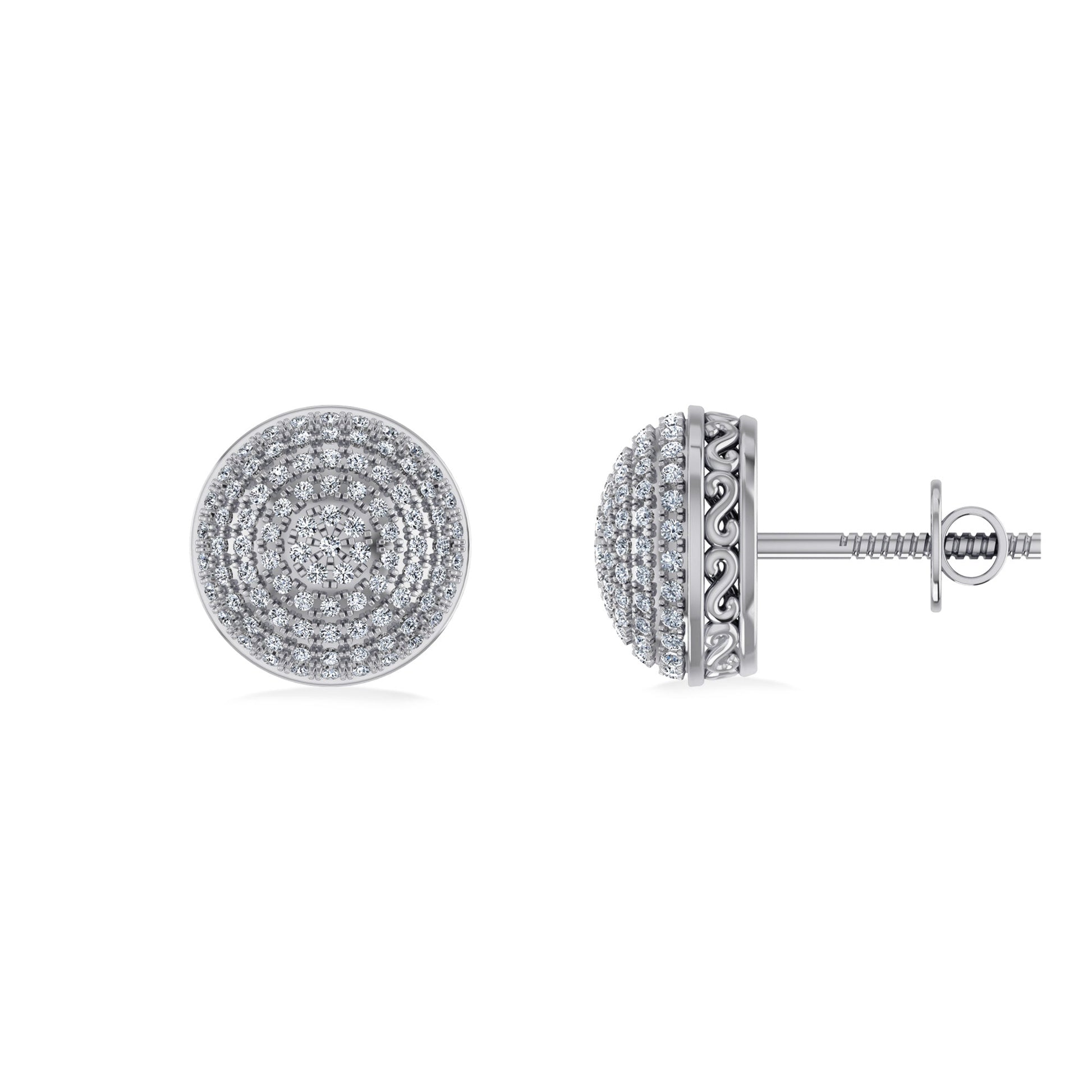 10K White Gold Round Diamond Designer Mens Stud Earring 3/8 Cttw