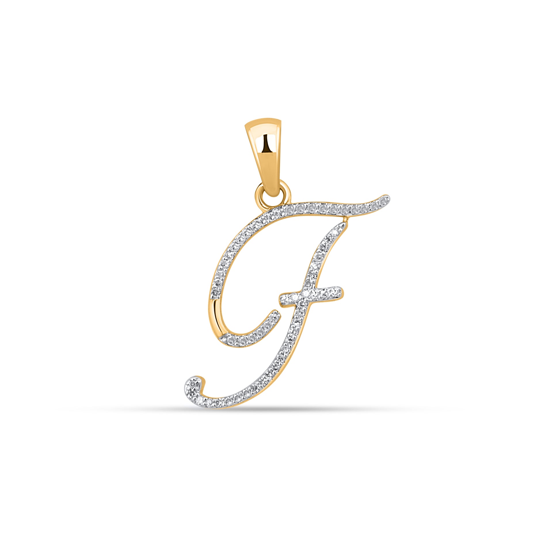 10K Yellow Gold Round Diamond F Letter Initial Pendant 1/10 Cttw