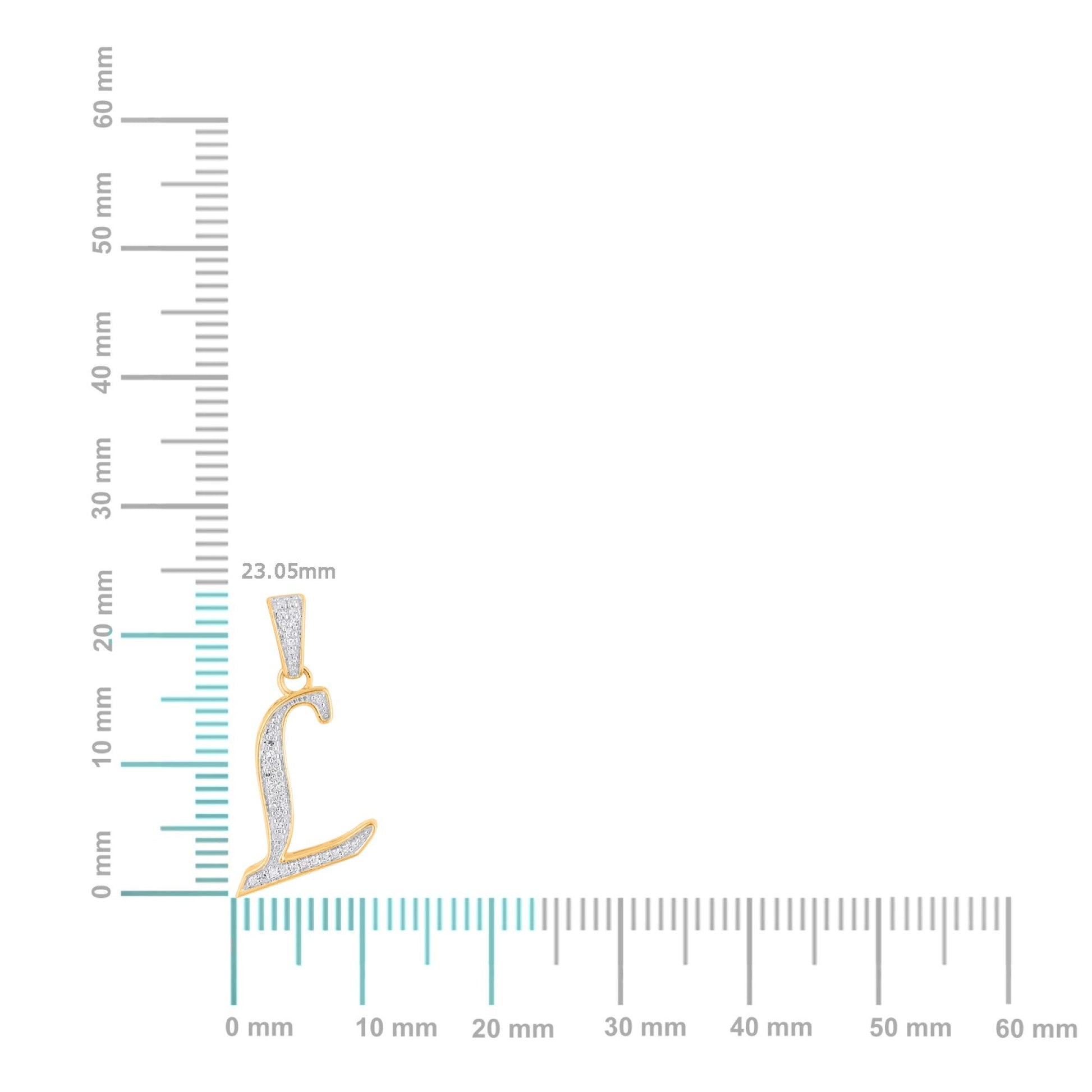 10K Yellow Gold Round Diamond L Letter Initial Pendant 1/10 Cttw