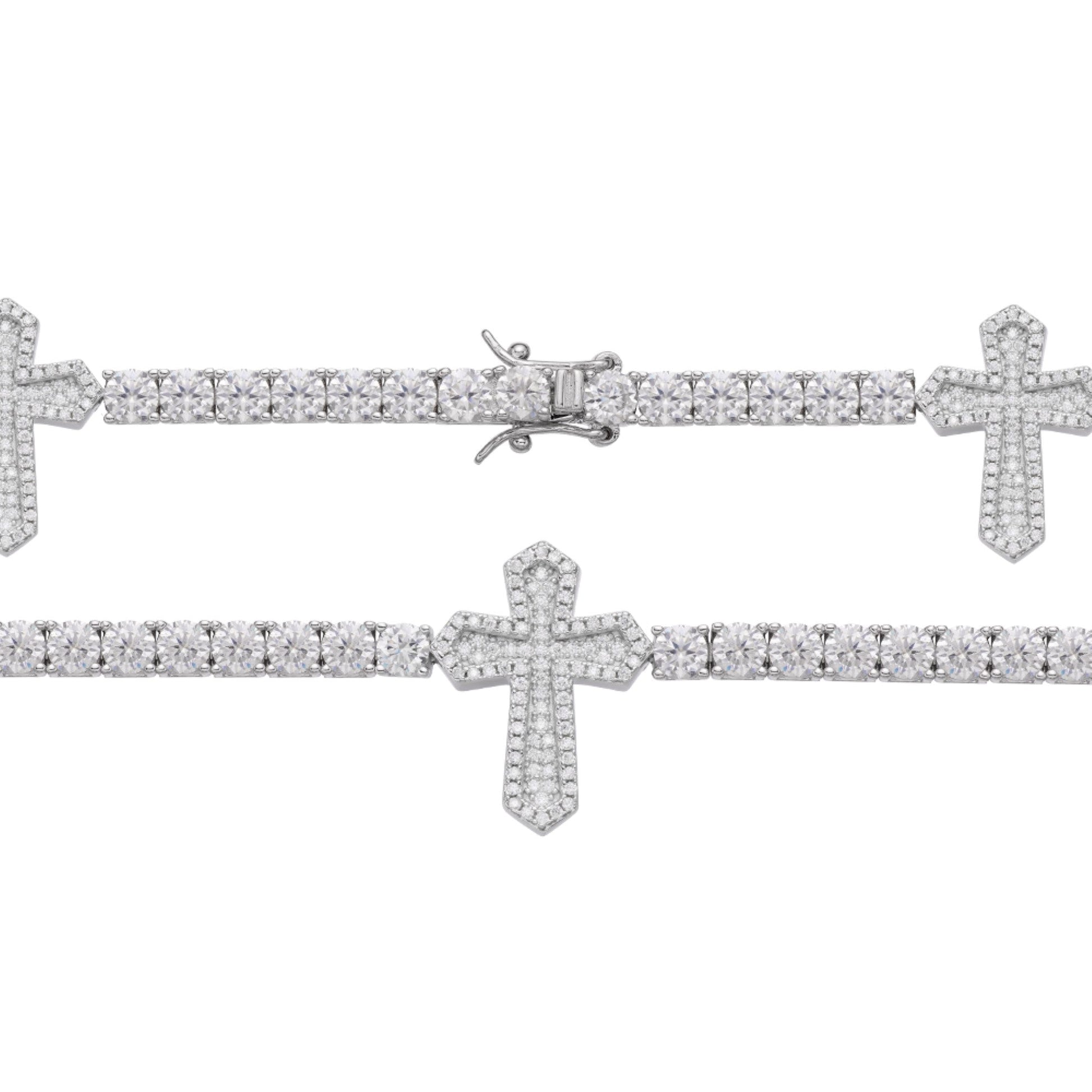 Sterling Silver Round Moissanite Cross Religious Bracelet 8.5 Inch RP 12-1/3 Cttw