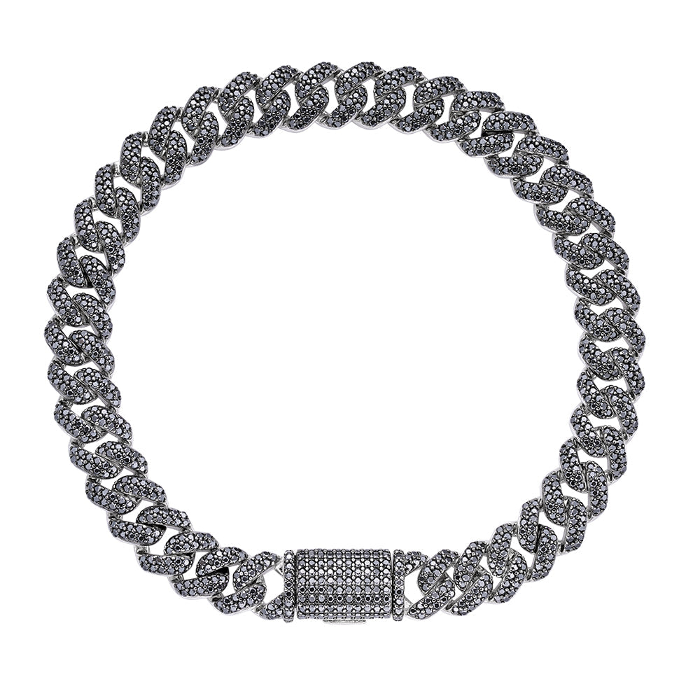 S.Silver 8mm Round Black Moissanite Miami Cuban 8 Inch Mens Bracelet RP+BP 5 Cttw