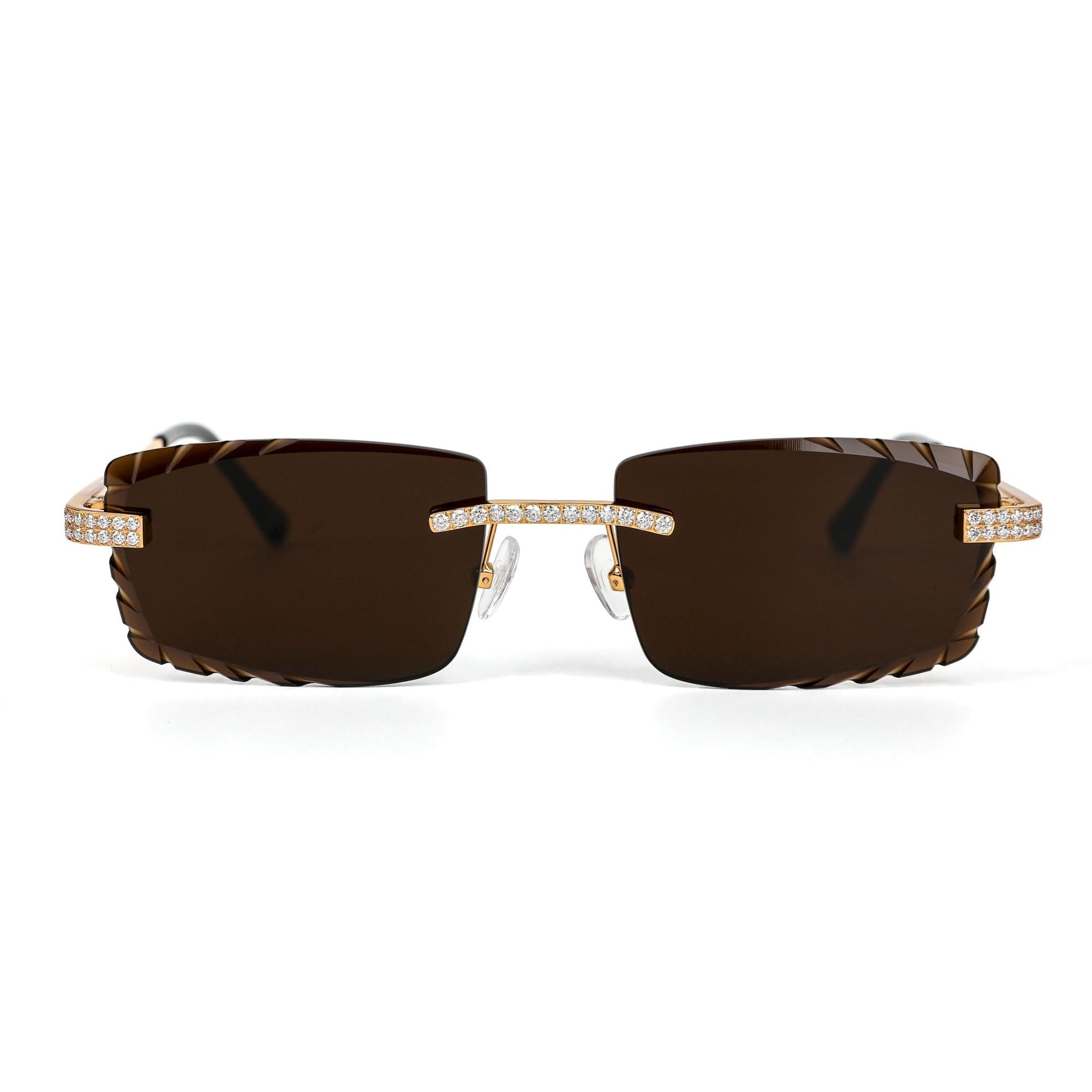 Sterling Silver Round Moissanite Cartier Square Shape Red Lens Wooden Glasses GP