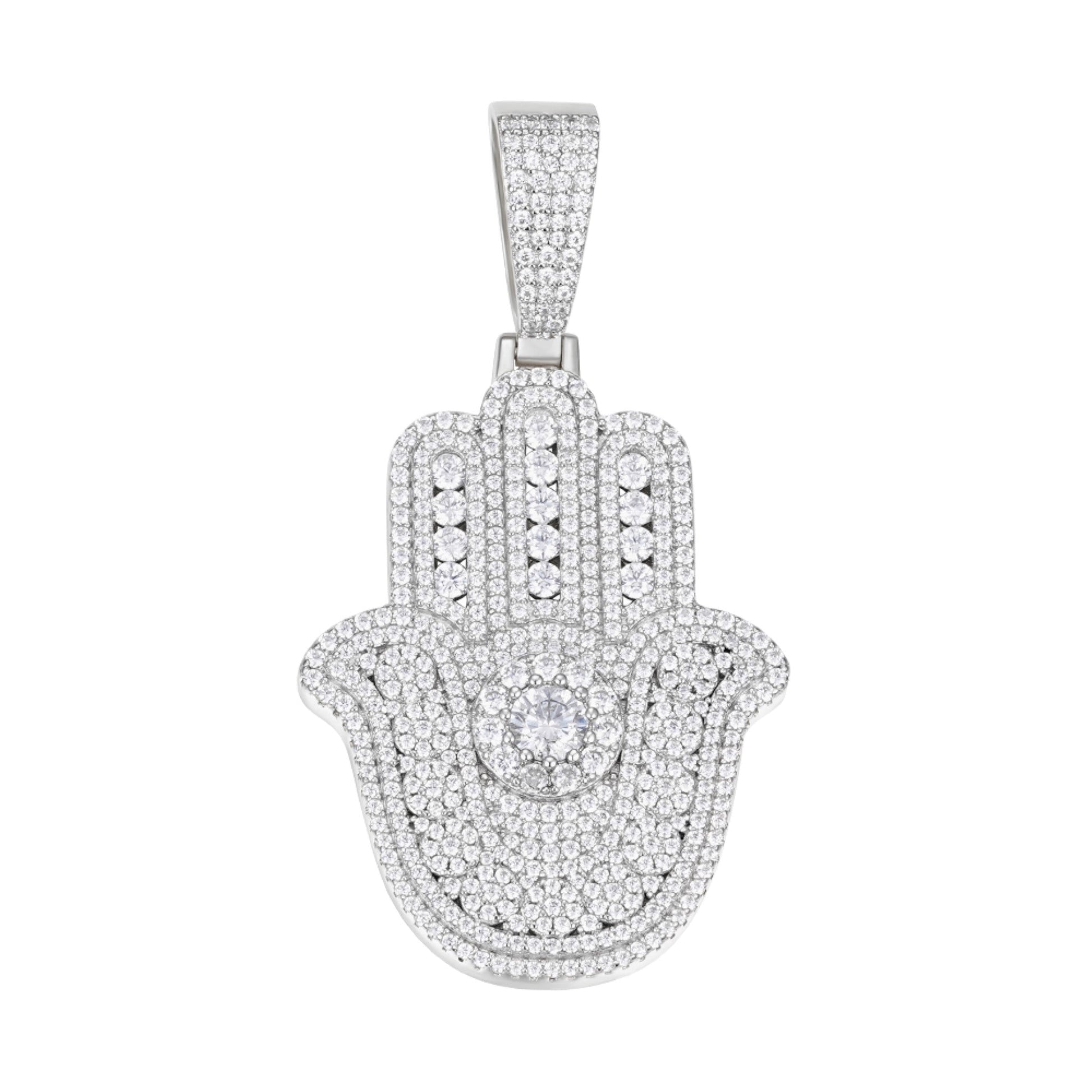 Sterling Silver Round Moissanite Hamza Hand Religious Pendant RP 4-3/8 Cttw
