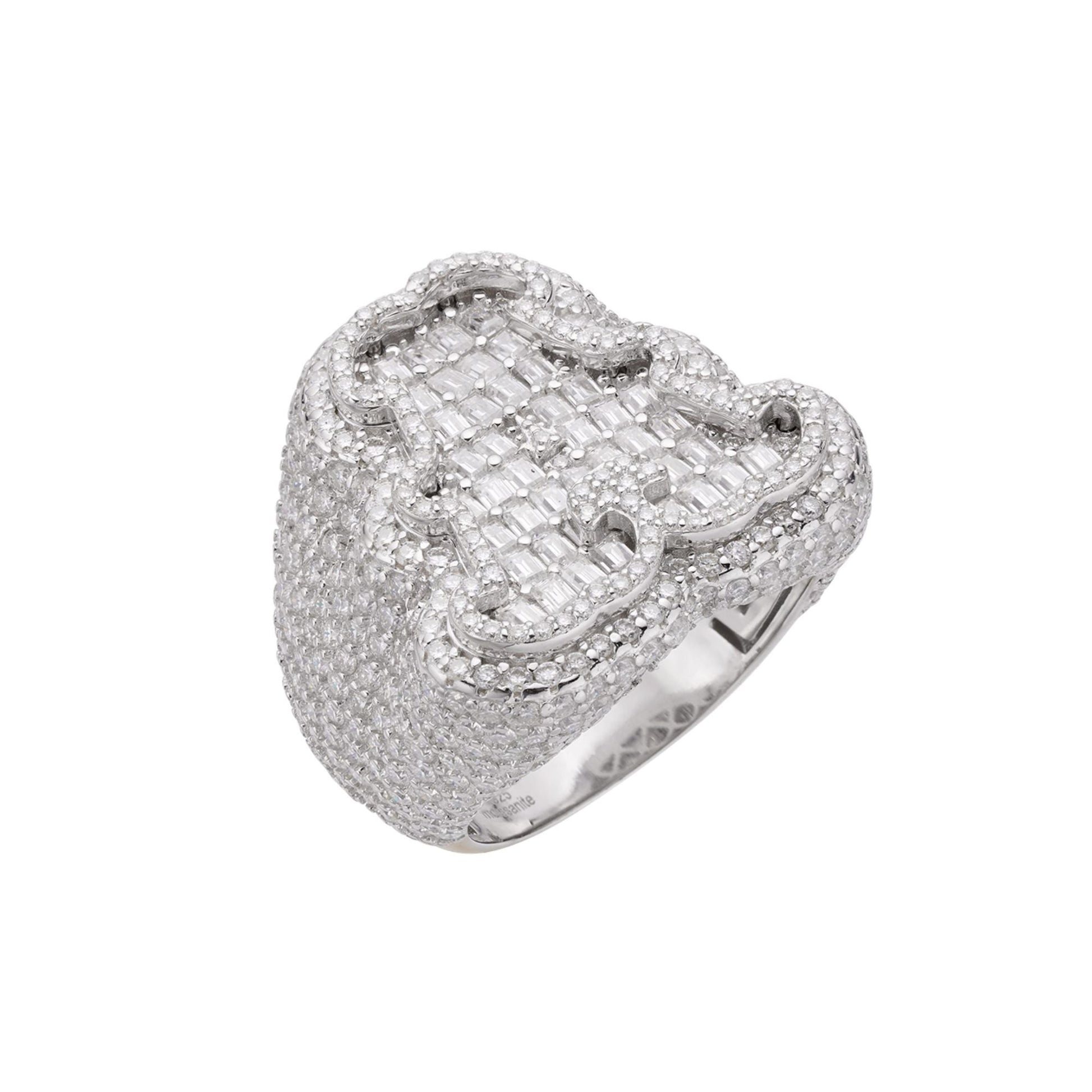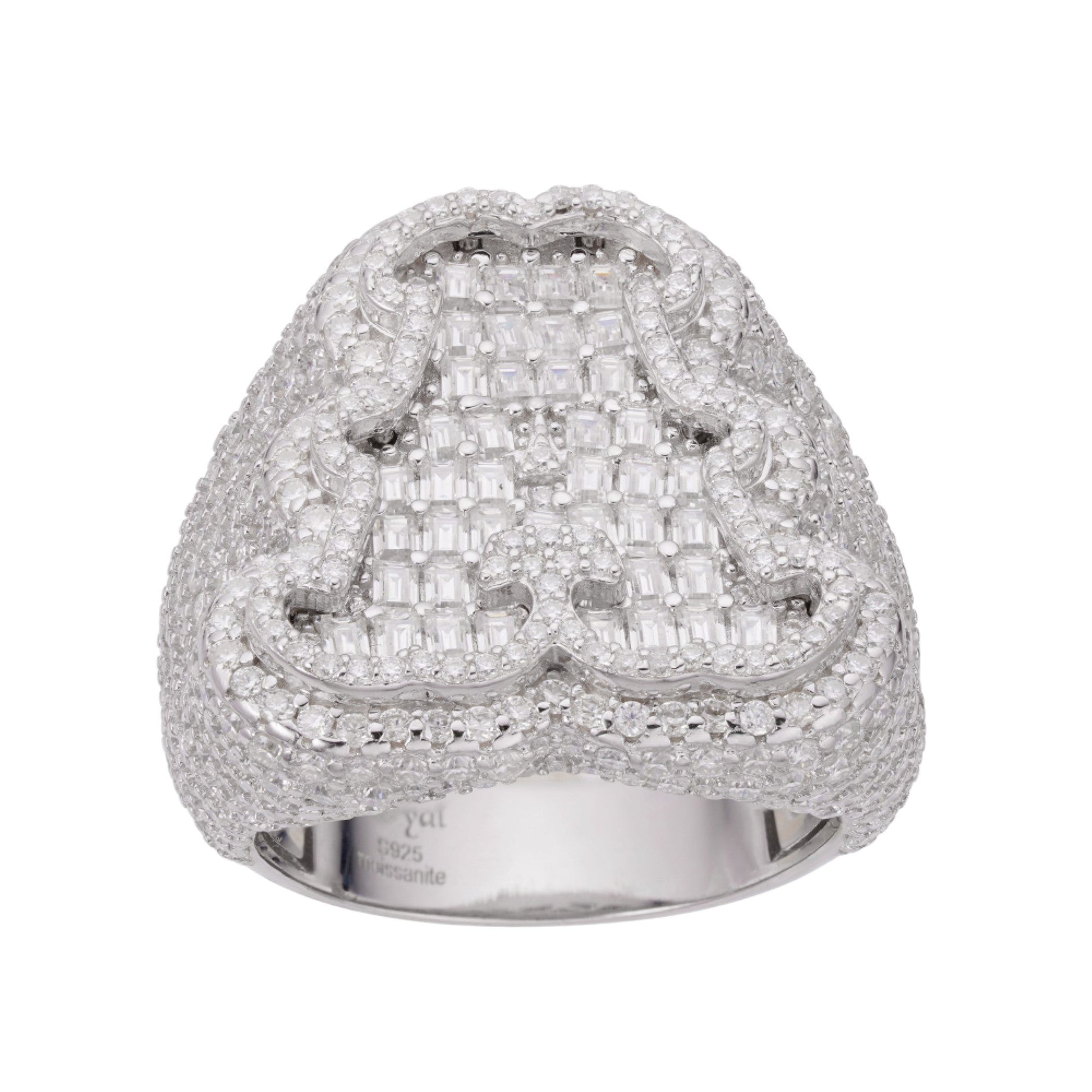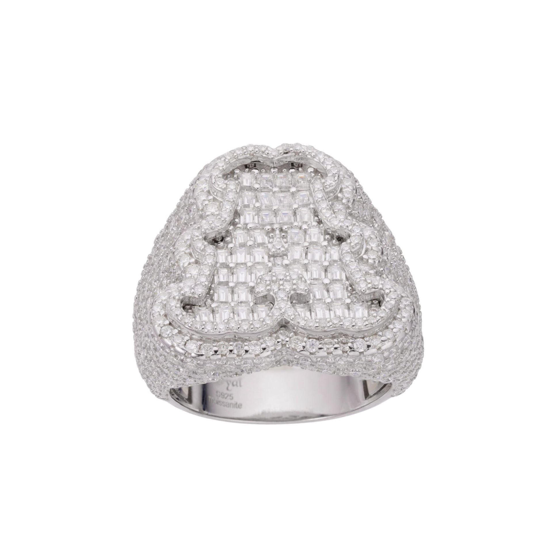 Sterling Silver Round Baguette Moissanite Albhabet A letter Initial SZ 10 Mens Ring RP 7-5/8 Cttw