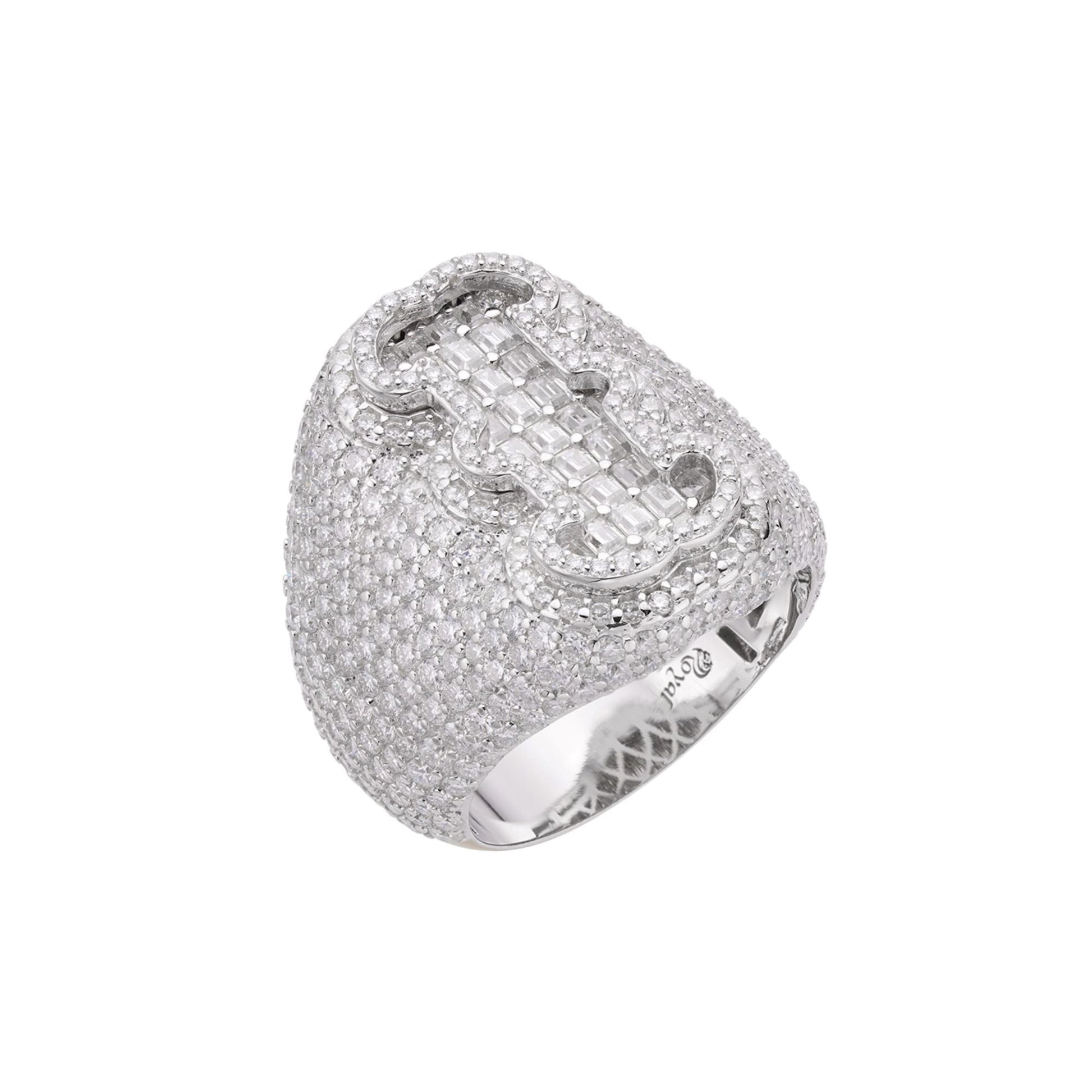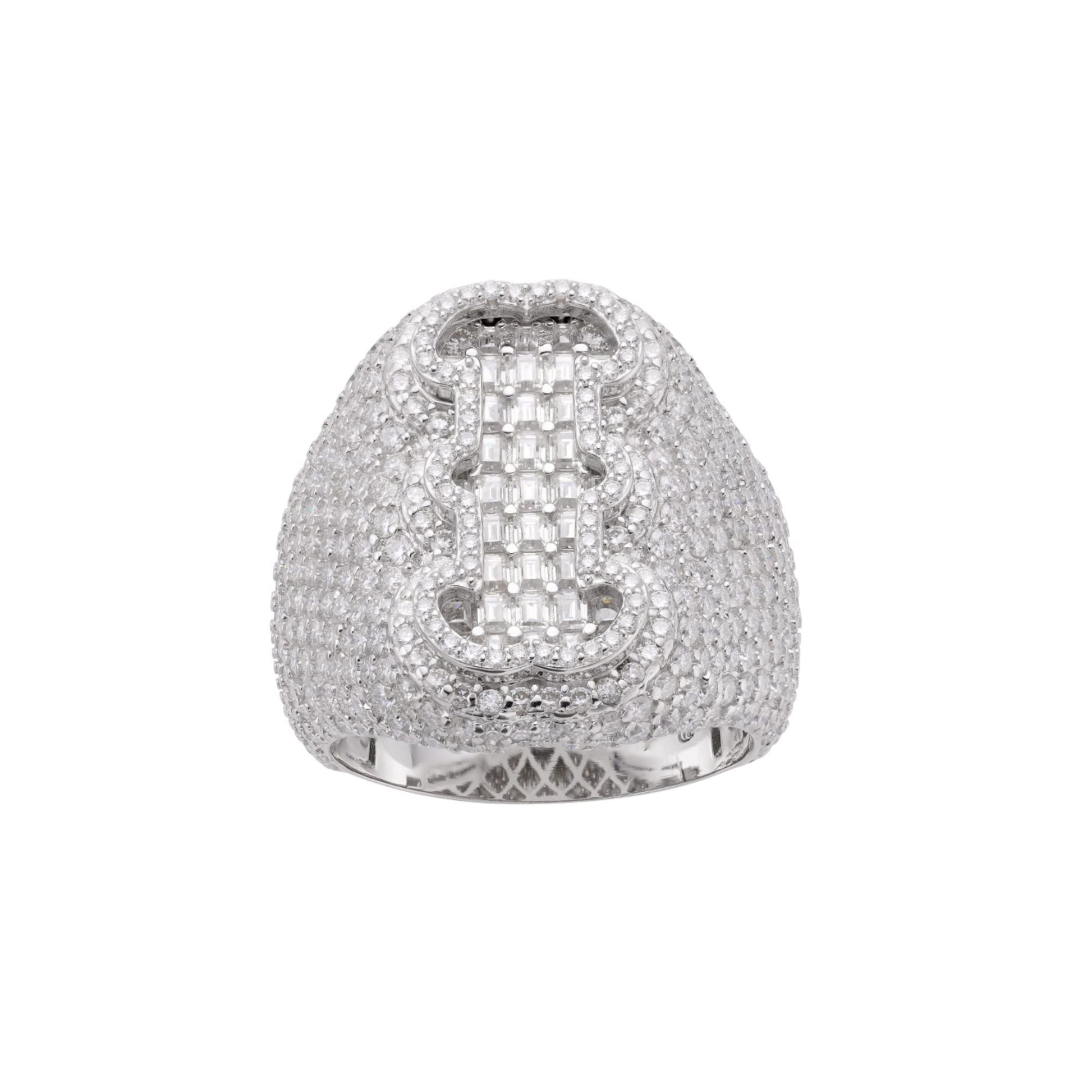 Sterling Silver Round Baugette Moissanite Albhabet I letter Initial SZ 10 Mens Ring RP 6-1/2 Cttw
