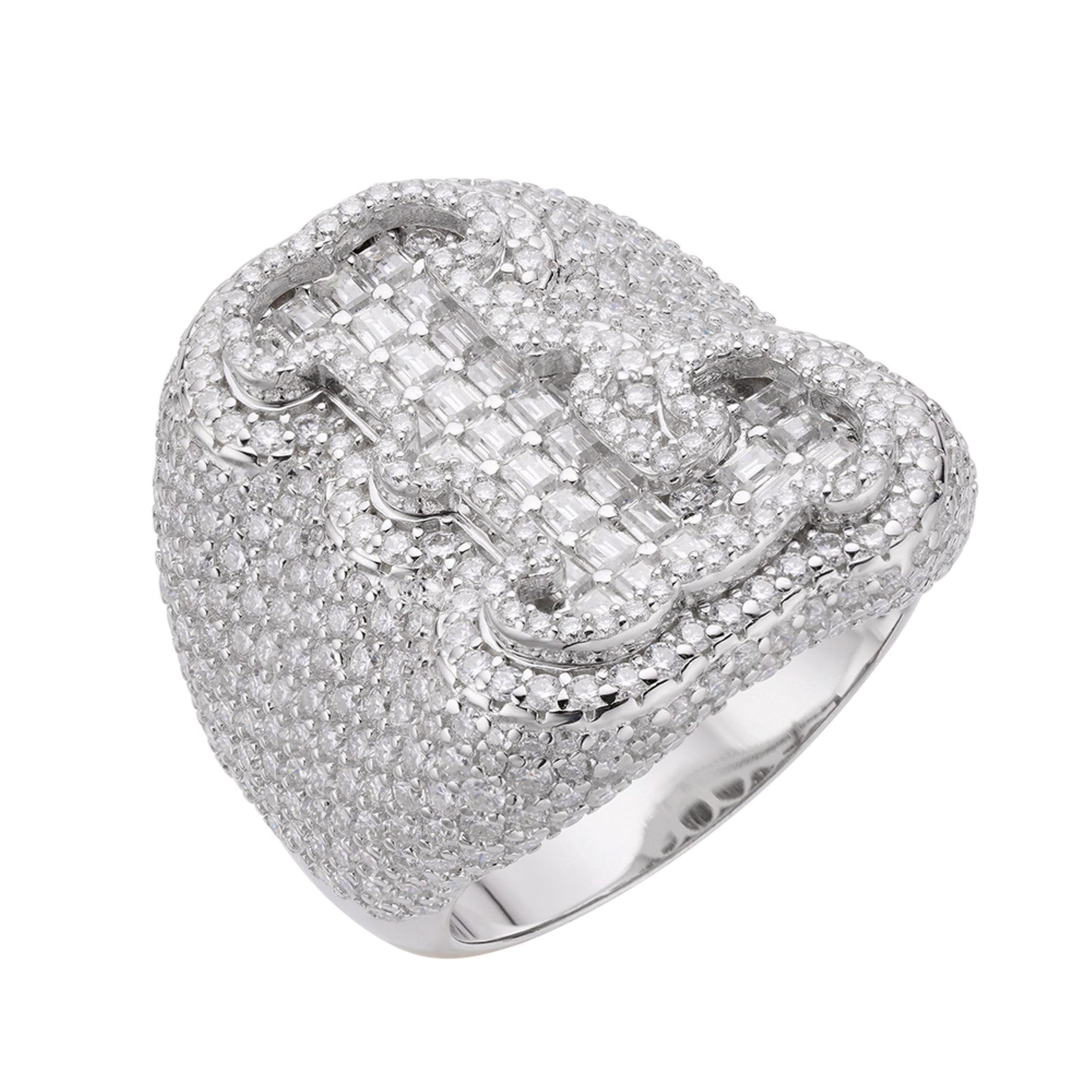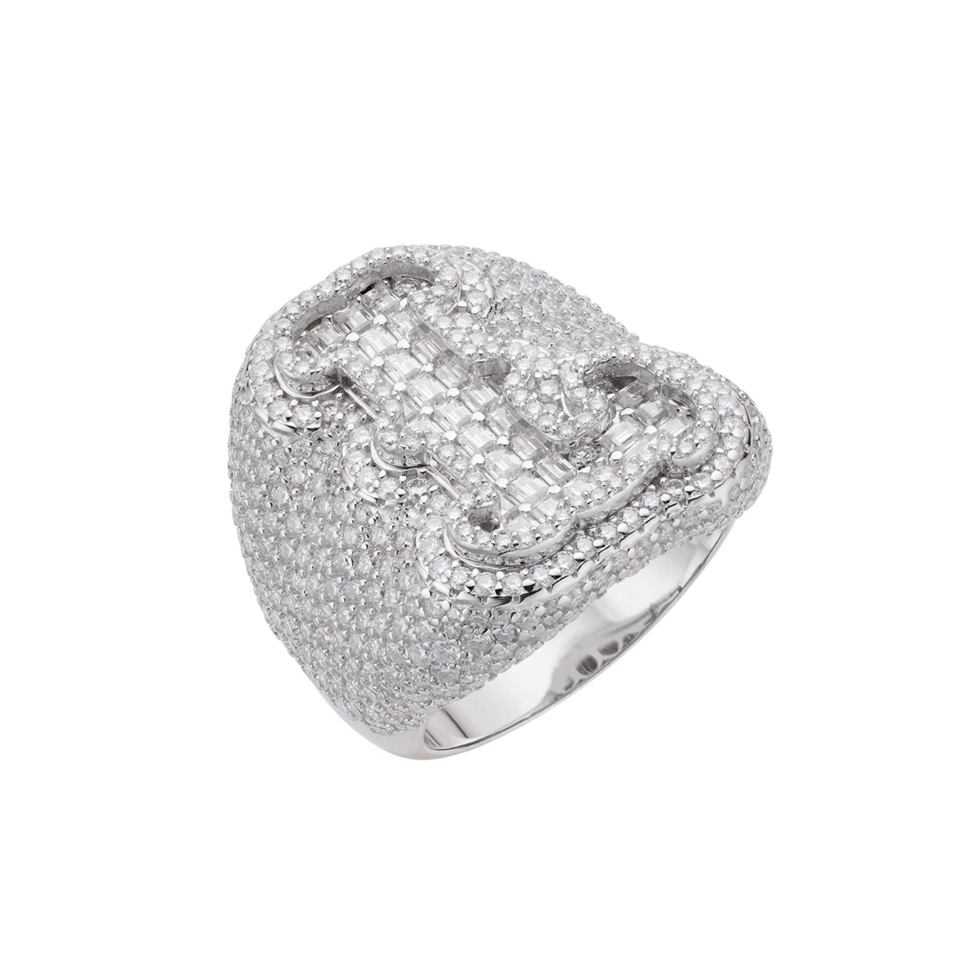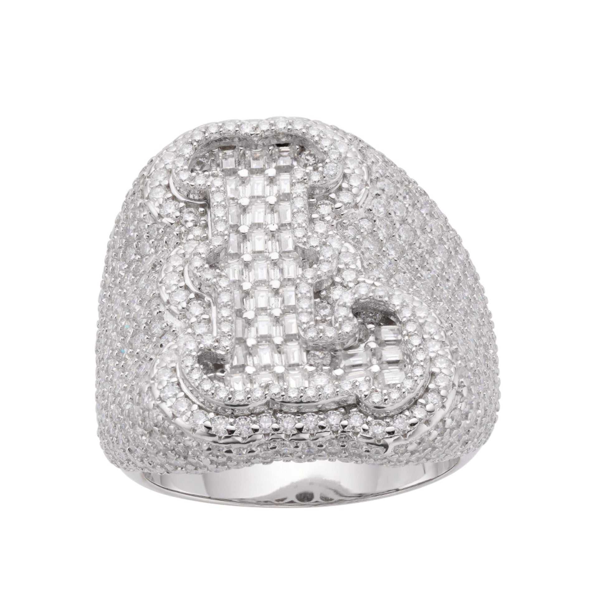 Sterling Silver Round Baugette Moissanite Albhabet L letter Initial SZ 10 Mens Ring RP 6-5/8 Cttw