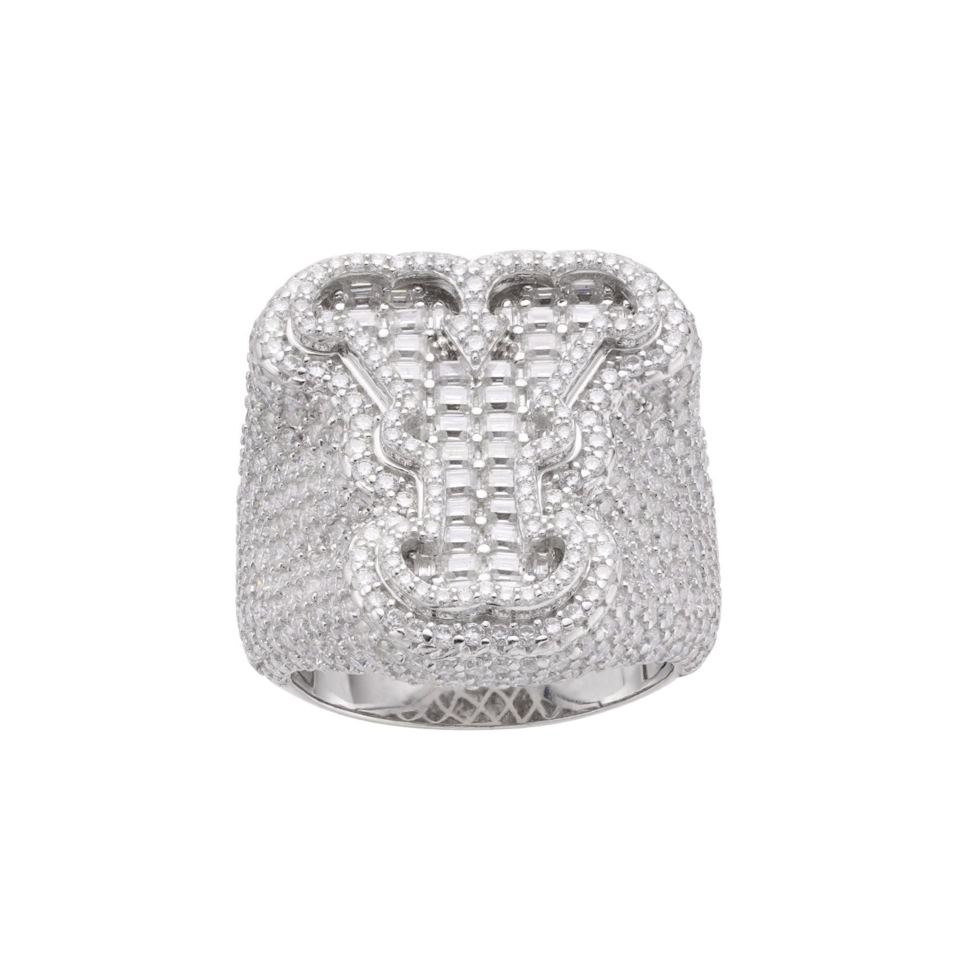 Sterling Silver Round Baugette Moissanite Albhabet Y letter Initial SZ 10 Mens Ring RP 6-7/8 Cttw