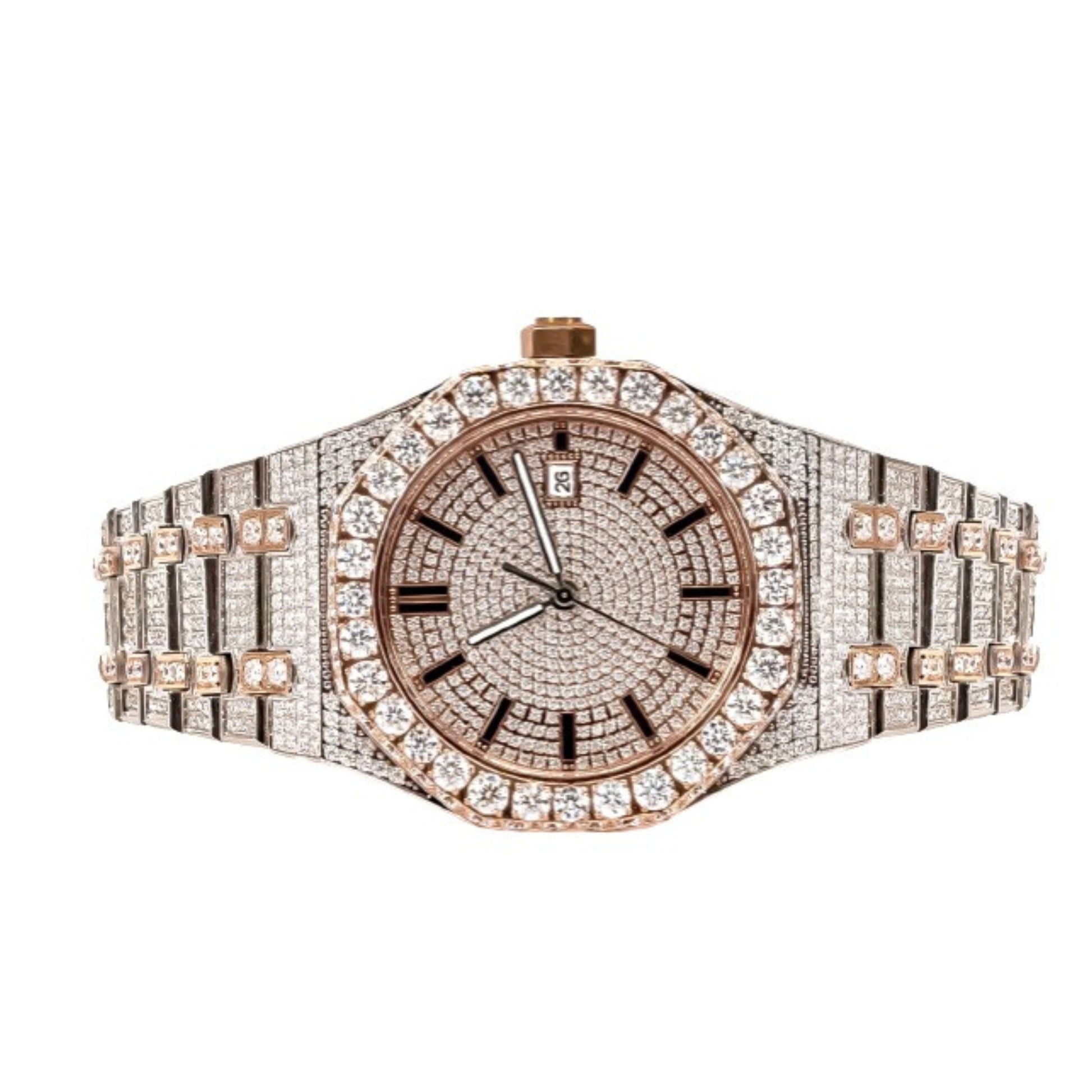 Moissanite Stainless Steel Watch Rose Two Tone Steel Band 22-1/3 Cttw
