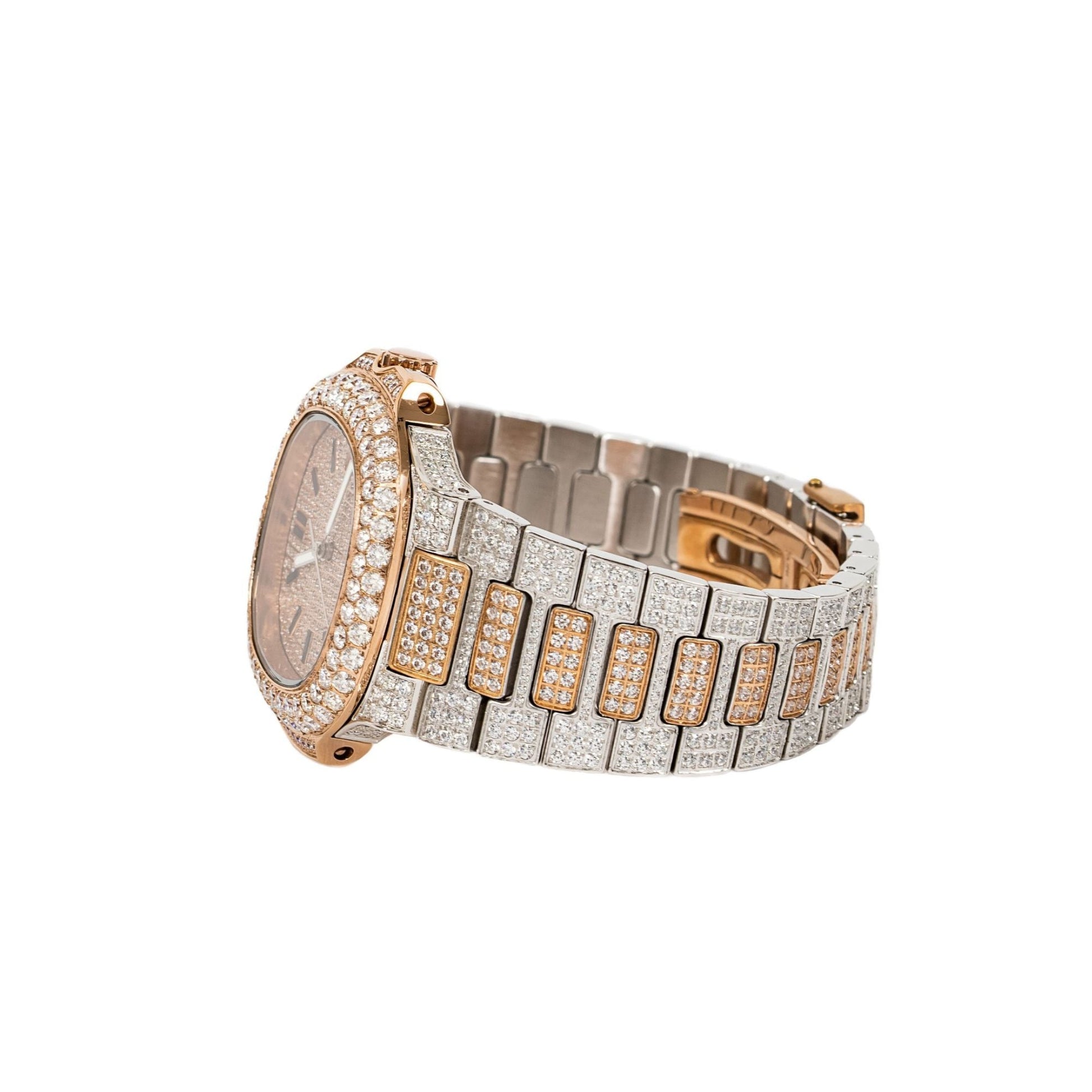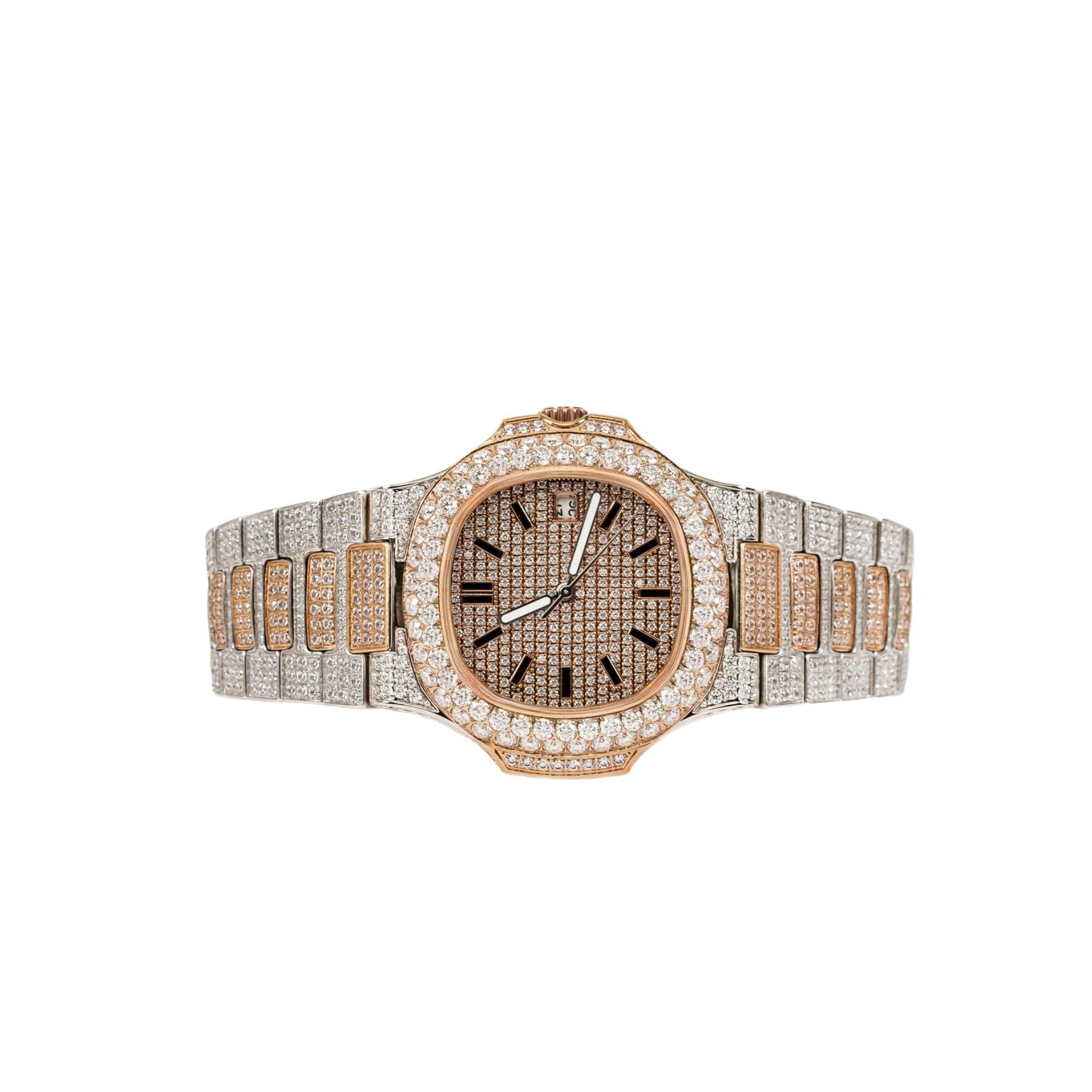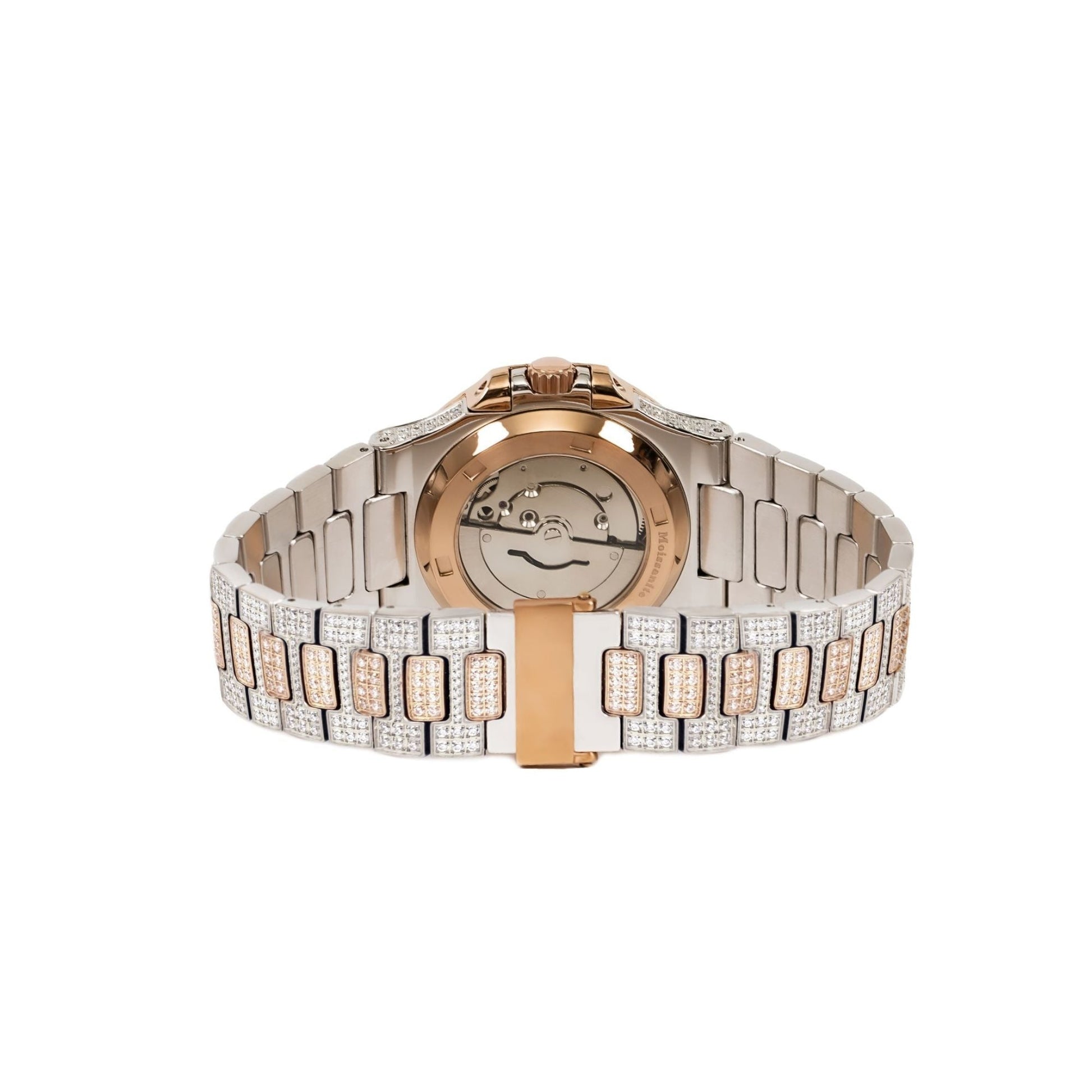 Moissanite Stainless Steel Rose Two Tone Band Mens Watch 18-1/3 Cttw