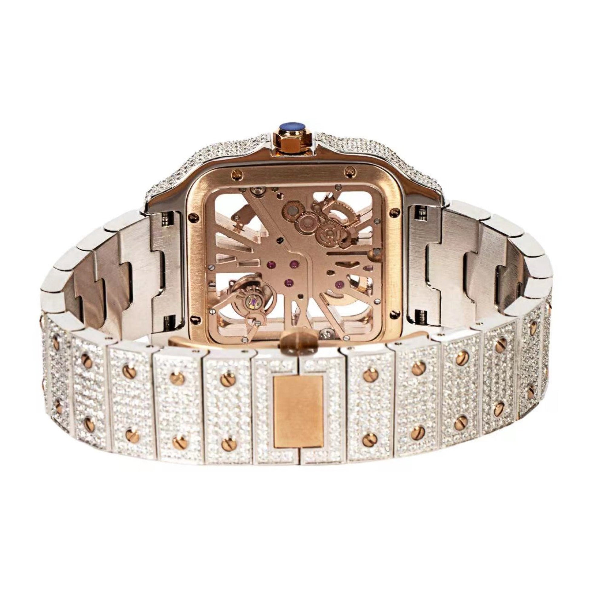 Moissanite Stainless Steel Rose Two Tone Band Mens Watch 20-1/5 Cttw