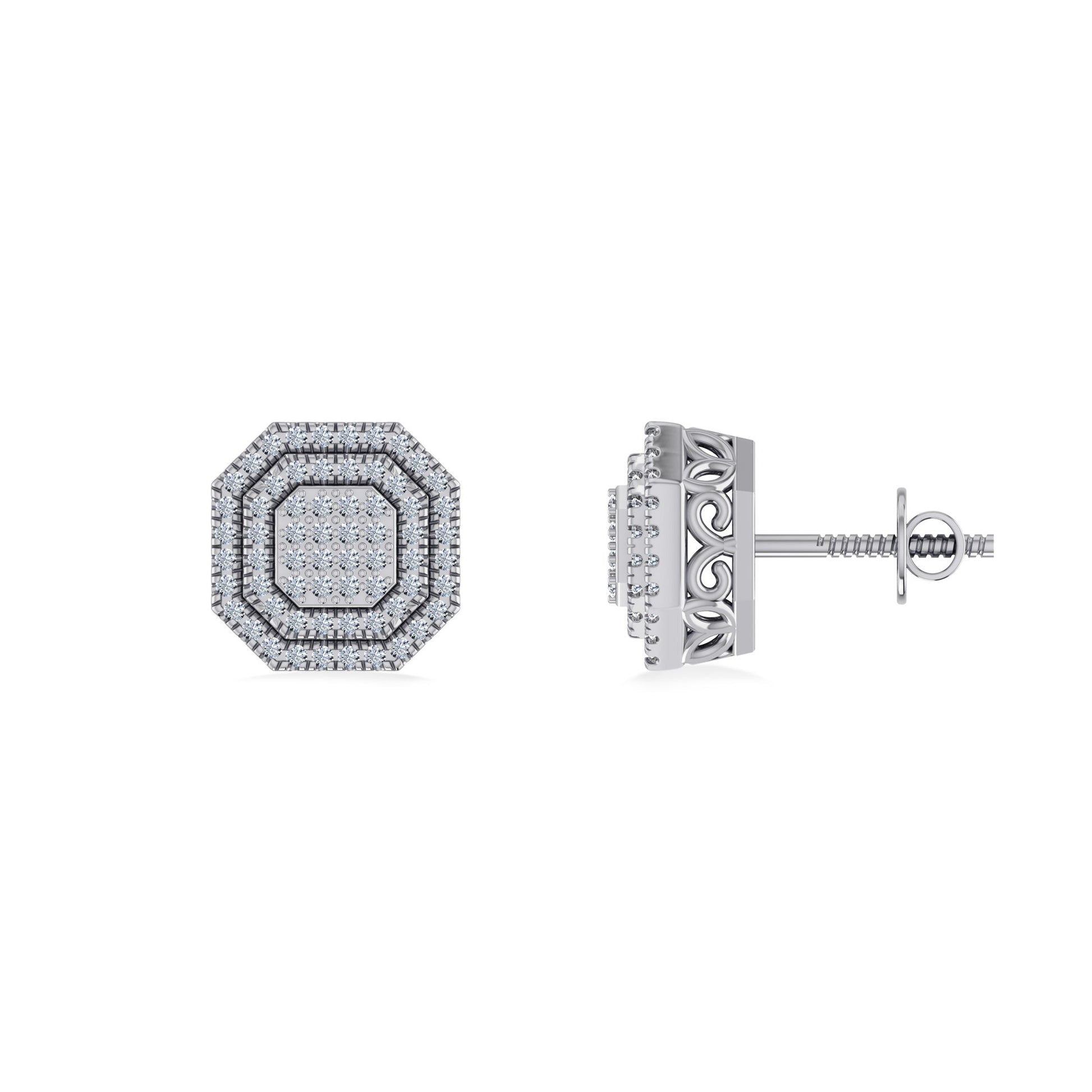 Sterling Silver Round Diamond Designer Mens Stud Earring 1/4 Cttw