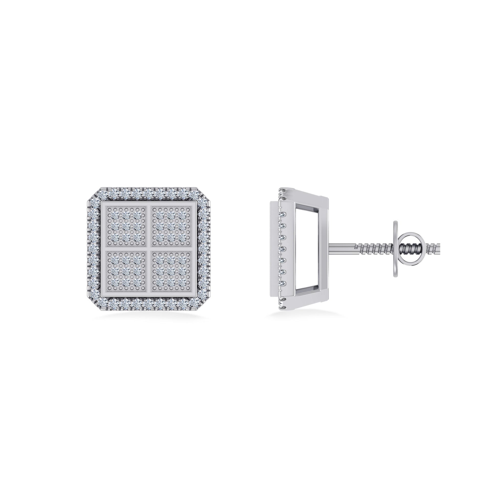 Sterling Silver Round Diamond Designer Mens Stud Earring 1/4 Cttw