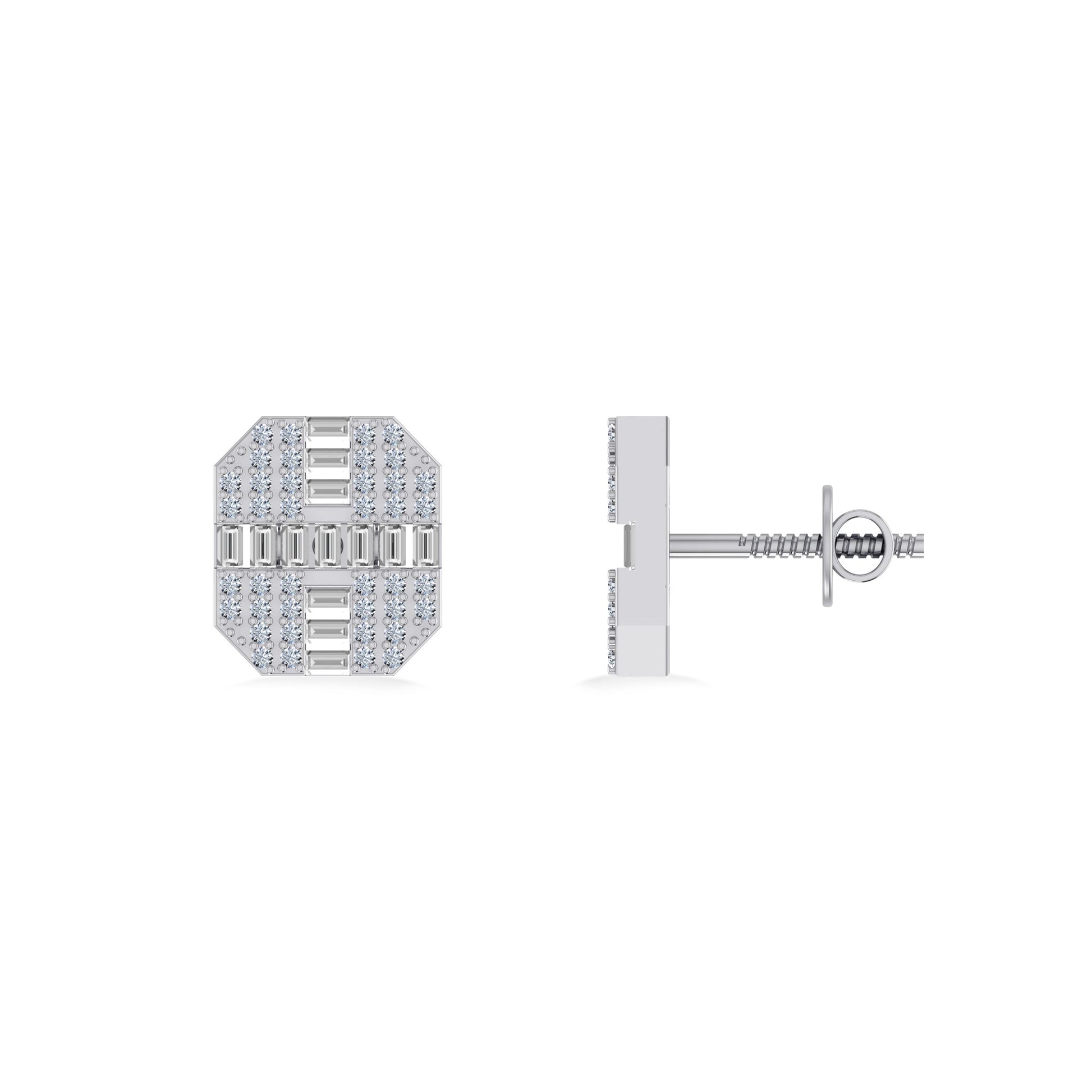 Sterling Silver Round Diamond Designer Mens Stud Earring 1/3 Cttw