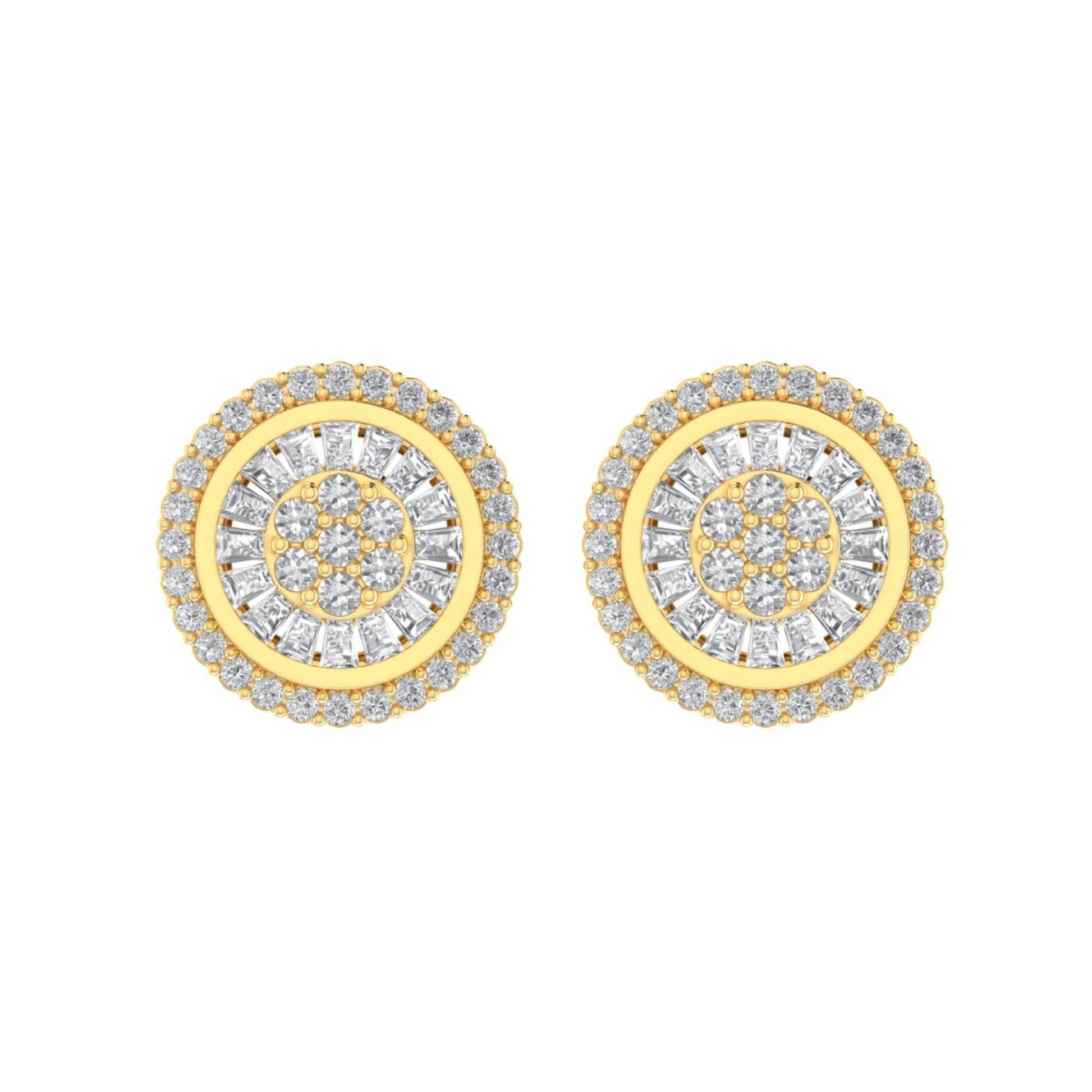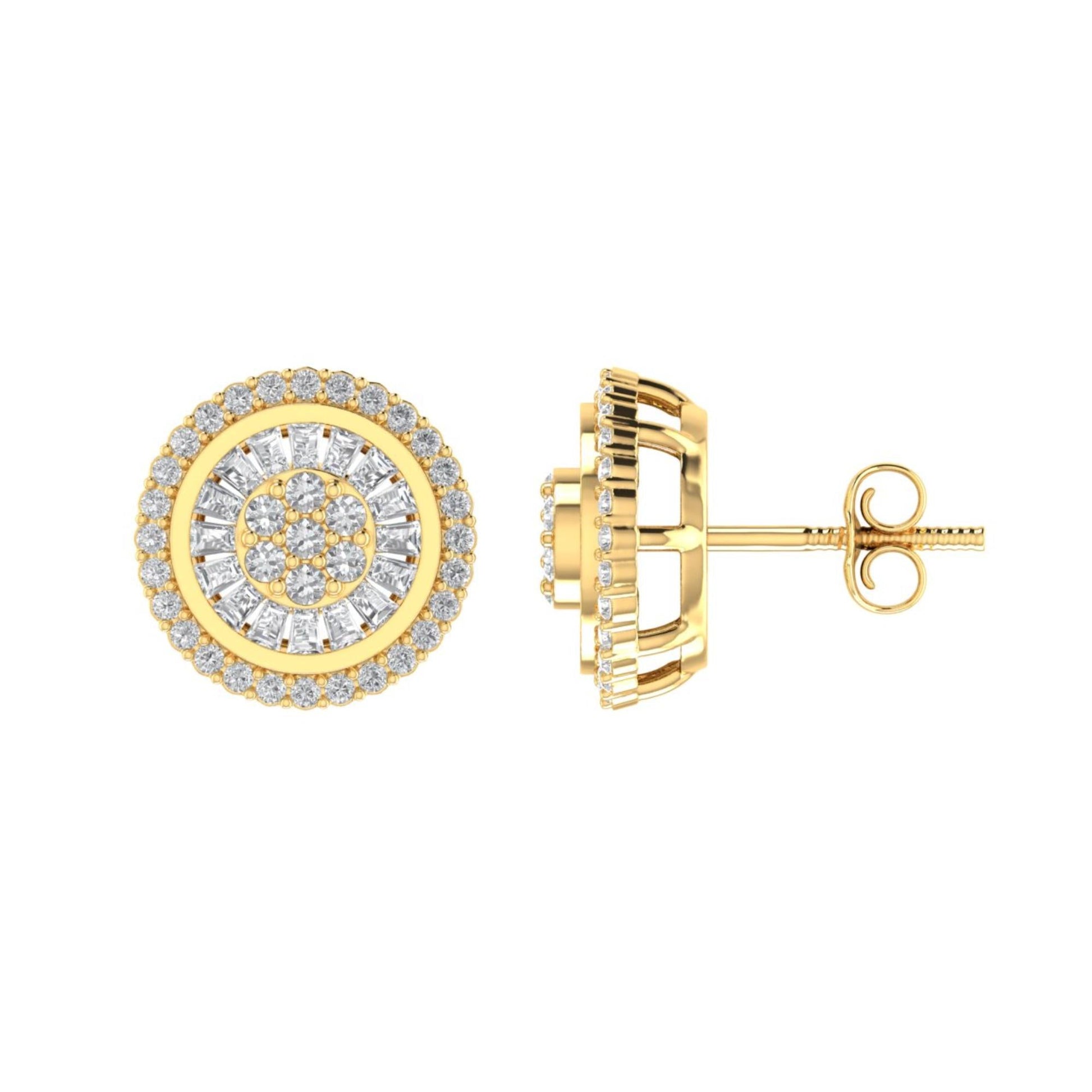 Sterling Silver Round Baguette Diamond Circle Shape Designer Stud Earring RP+GP 1/2 Cttw