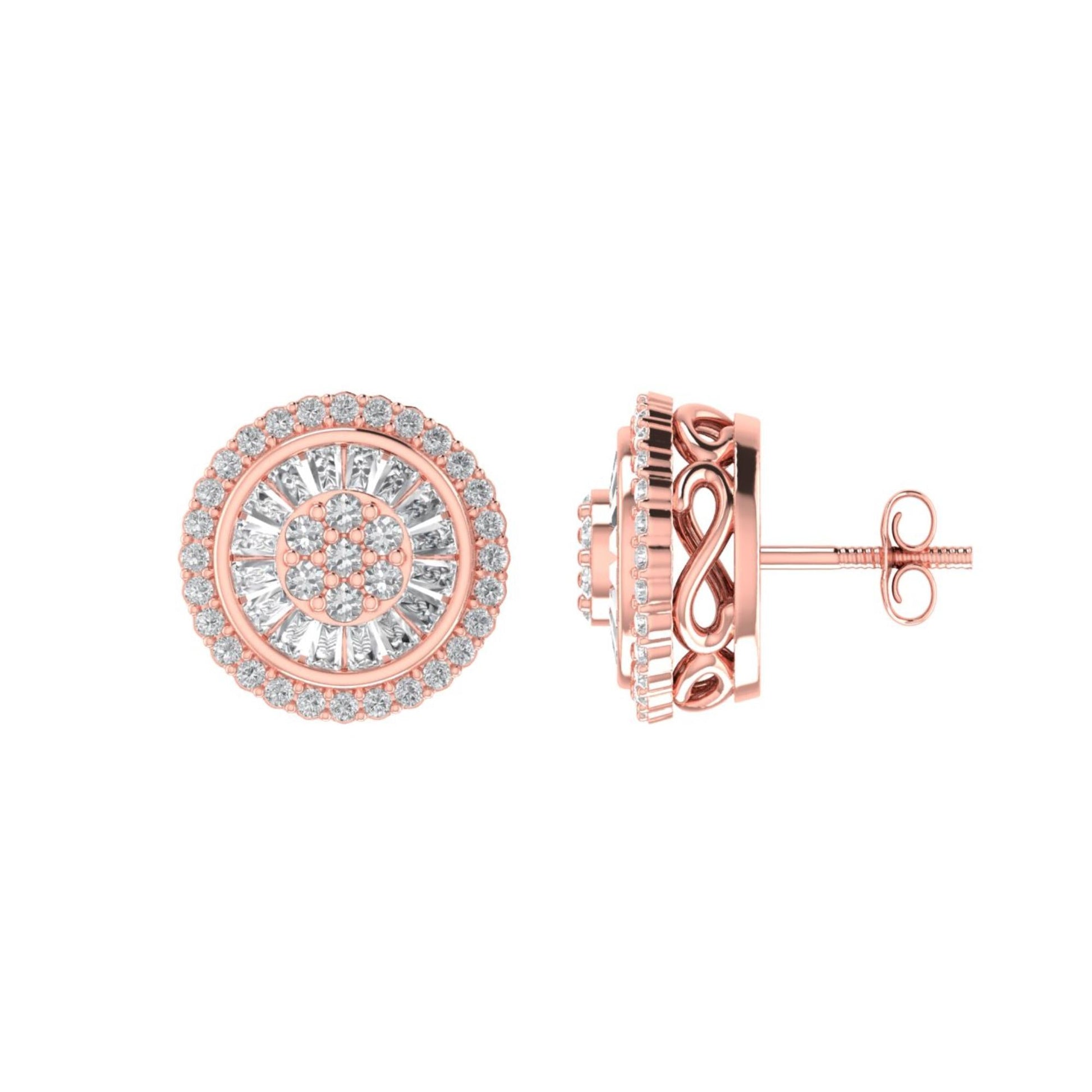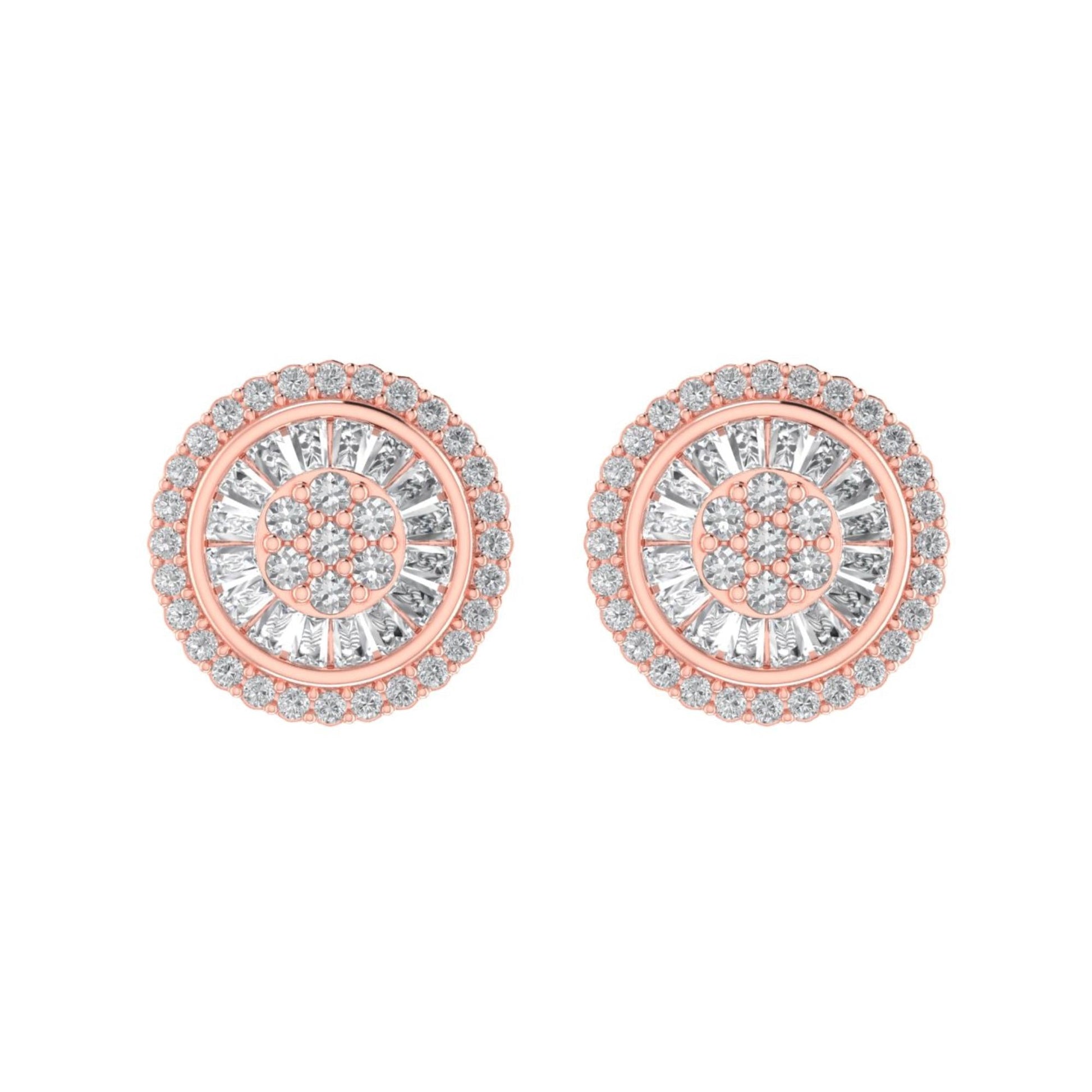 Sterling Silver Round Baguette Diamond Circle Shape Designer Stud Earring RP+PP 1/2 Cttw