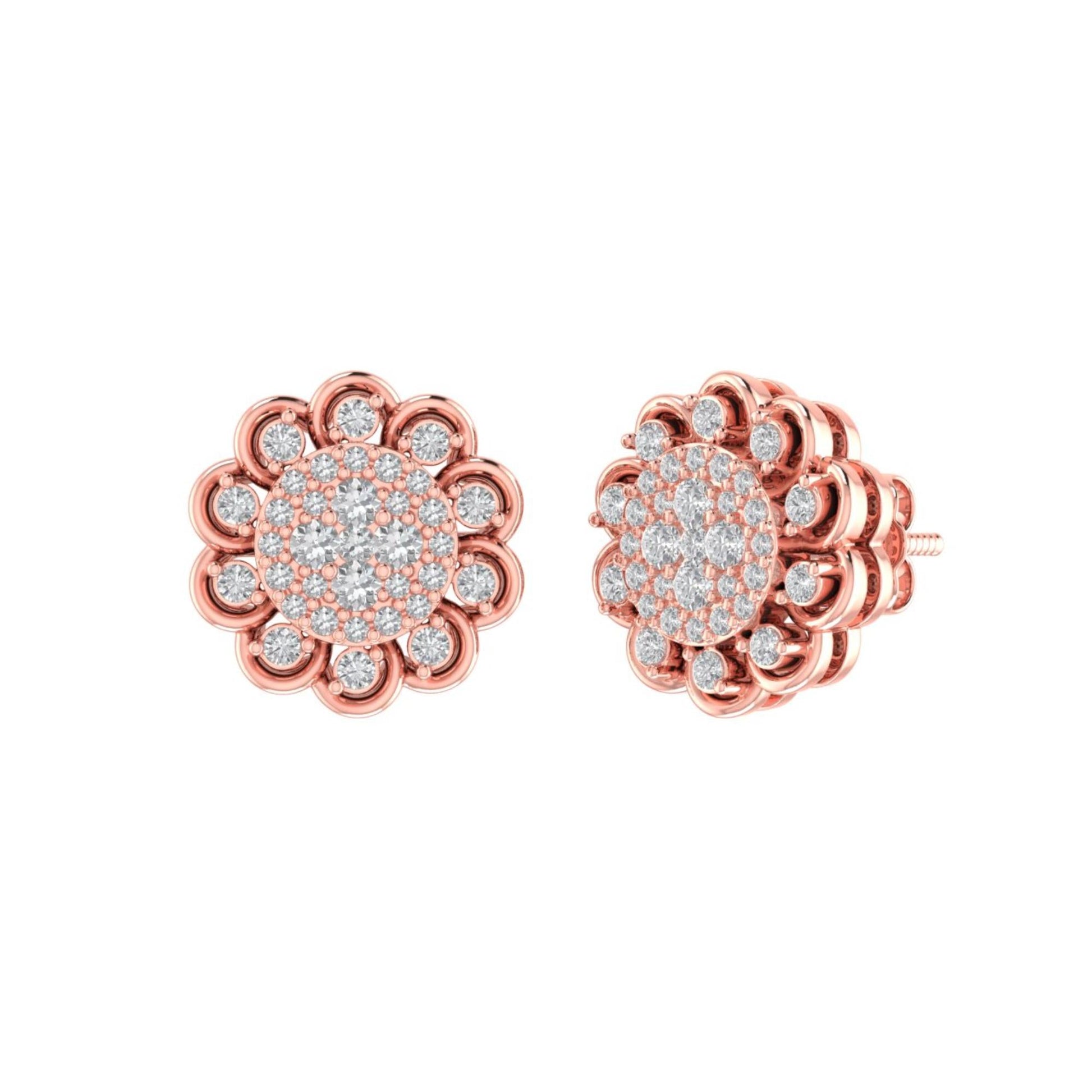 Sterling Silver Round Diamond Flower Designer Stud Earring RP+PP 1/2 Cttw
