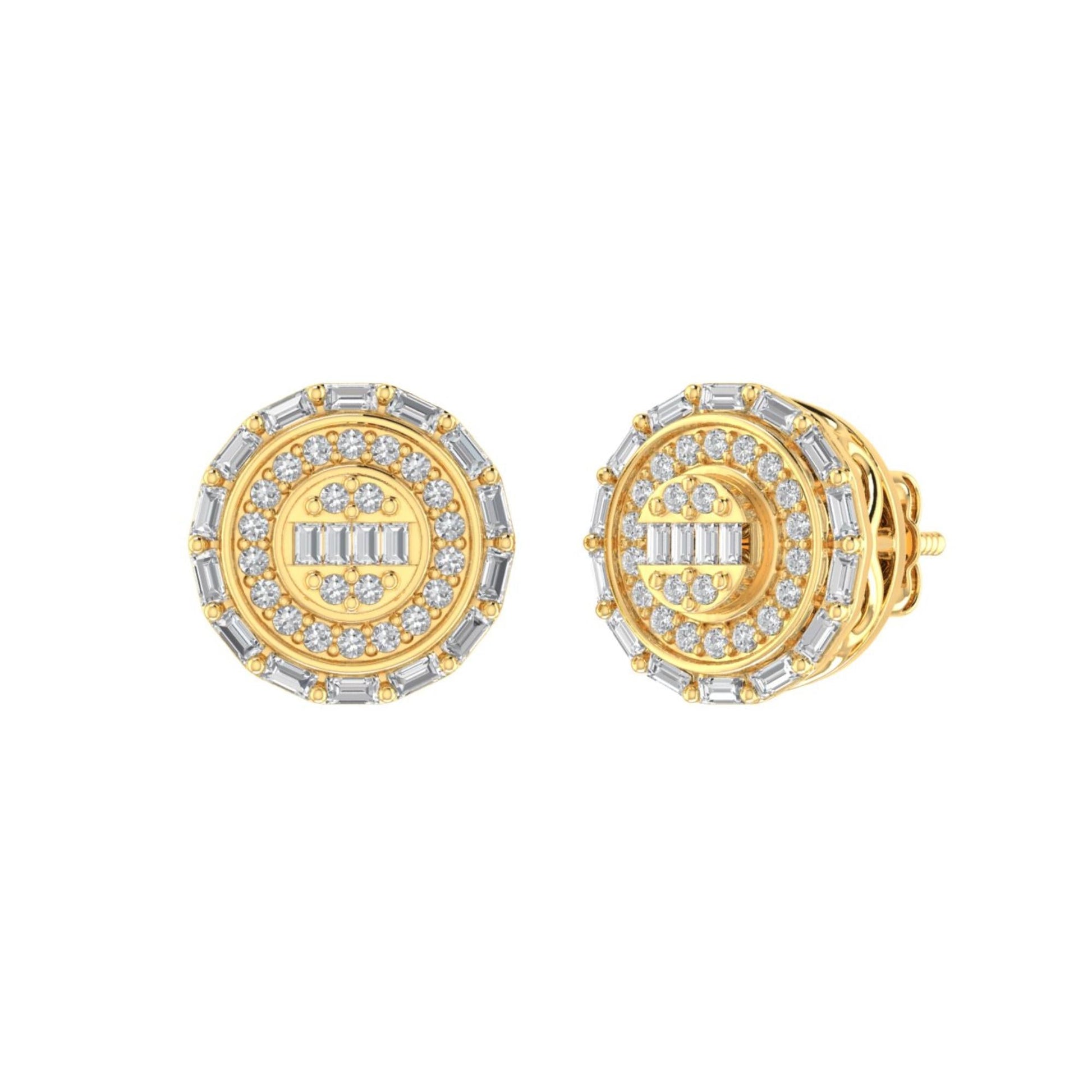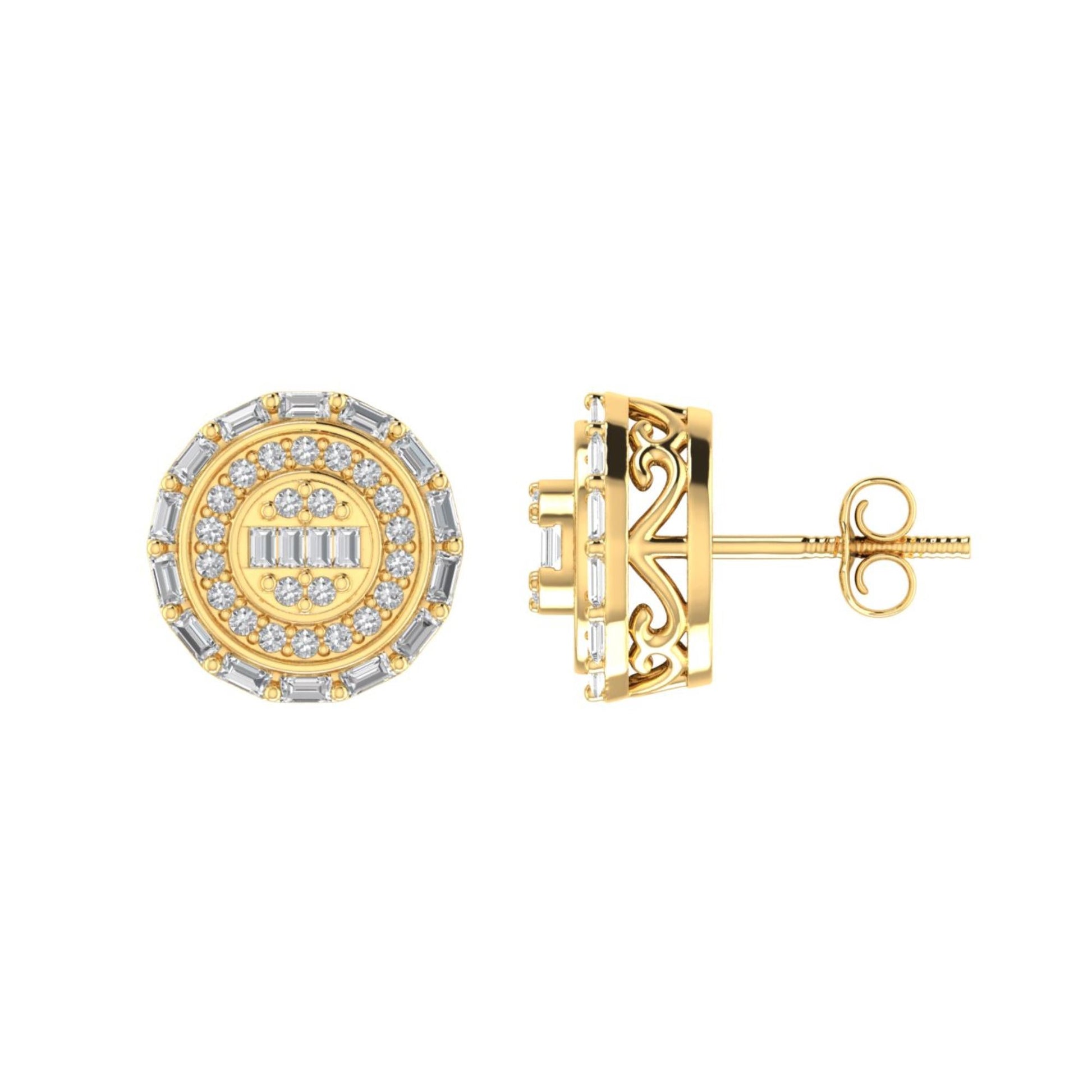 Sterling Silver Round Baguette Diamond Circle Shape Designer Stud Earring RP+GP 1/3 Cttw