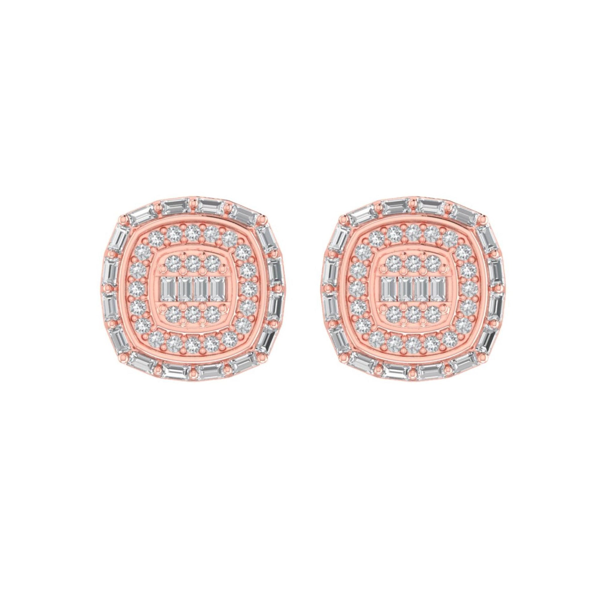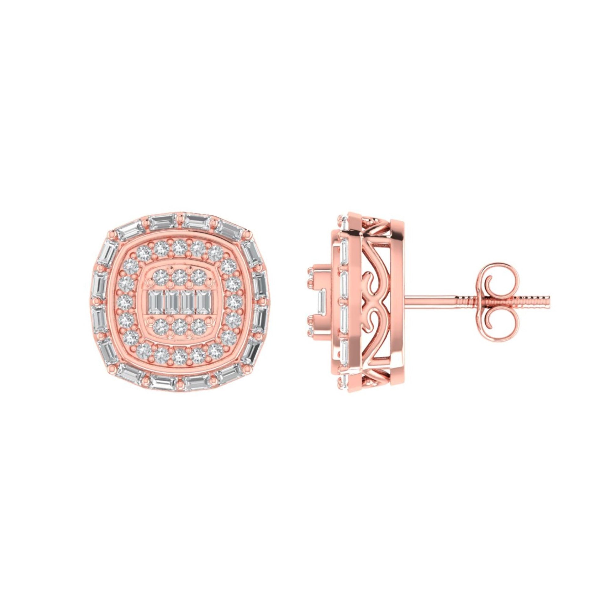 Sterling Silver Round Baguette Diamond Square Shape Designer Stud Earring RP+PP 1/3 Cttw